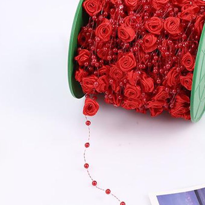 Pearls Bead Chain;Artificial Pearl Garland Wire Beads Chain; Line Pearls String by the Roll;Flower Beads DIY Wedding Bouquet Decoration;Imitation Pearls Beading Wire Lace Trim Ribbon;Handmade Sewing Crafts Decorative Accessories