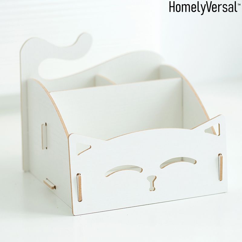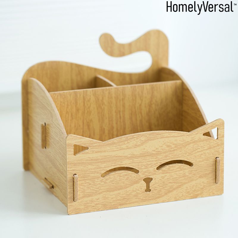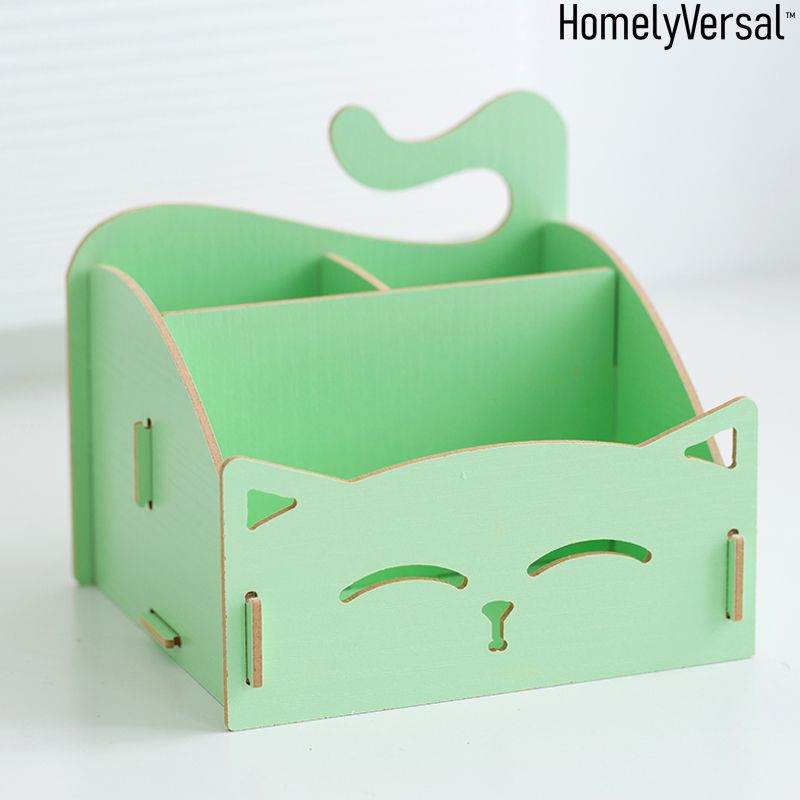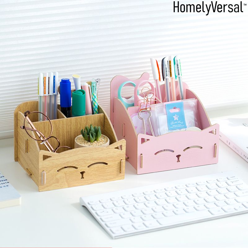1X Pen Container Creative Korea Storage Box desktop Lovely cartoon Students multi-functional wooden children pen clip card holders