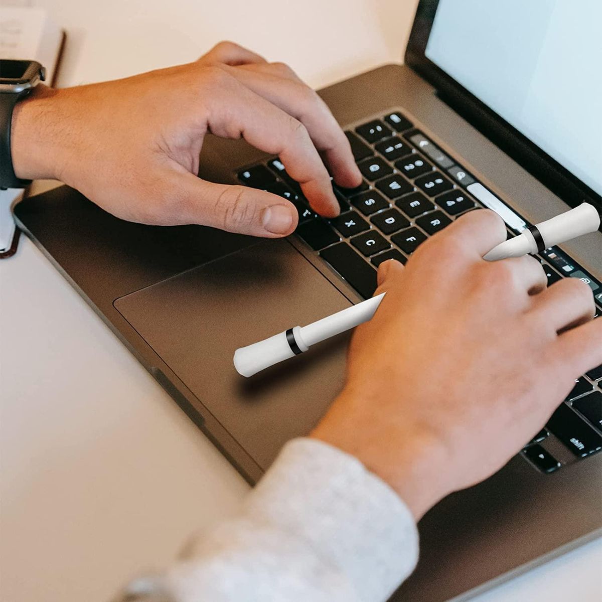 The rotating pen is made of non-slip and durable materials, so that the pen mods is not easy to be broken or damaged, and the two ends are equipped with anti-drop silicone caps, which can maintain a long service life.