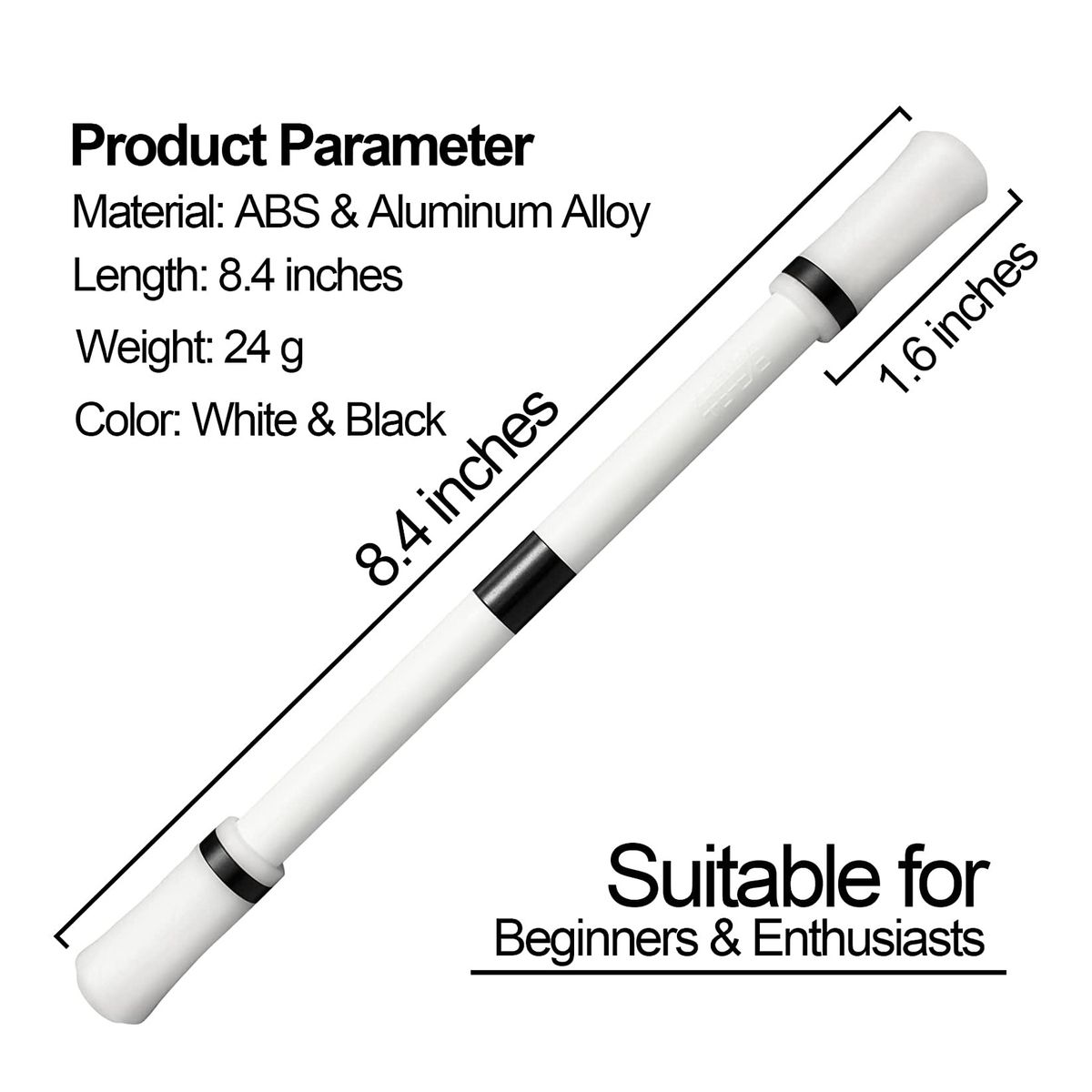 The two sides of the pen spinning mod are weighted to enhance the balance and stability, making it easier to find the balance point, thereby improving the flexibility of use.