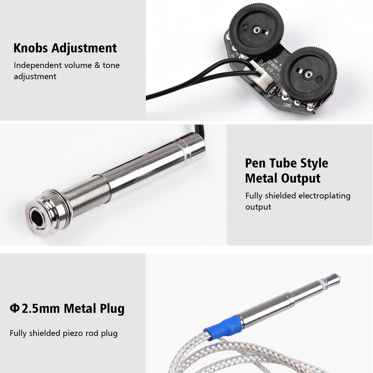 High Performance, Strong Gain: Adopt the active system, plug and play. independent volume amp; tone control. The guitar pickup has advantages of higher reduction and sensitivity, better anti-noise ability and no sound breaking.