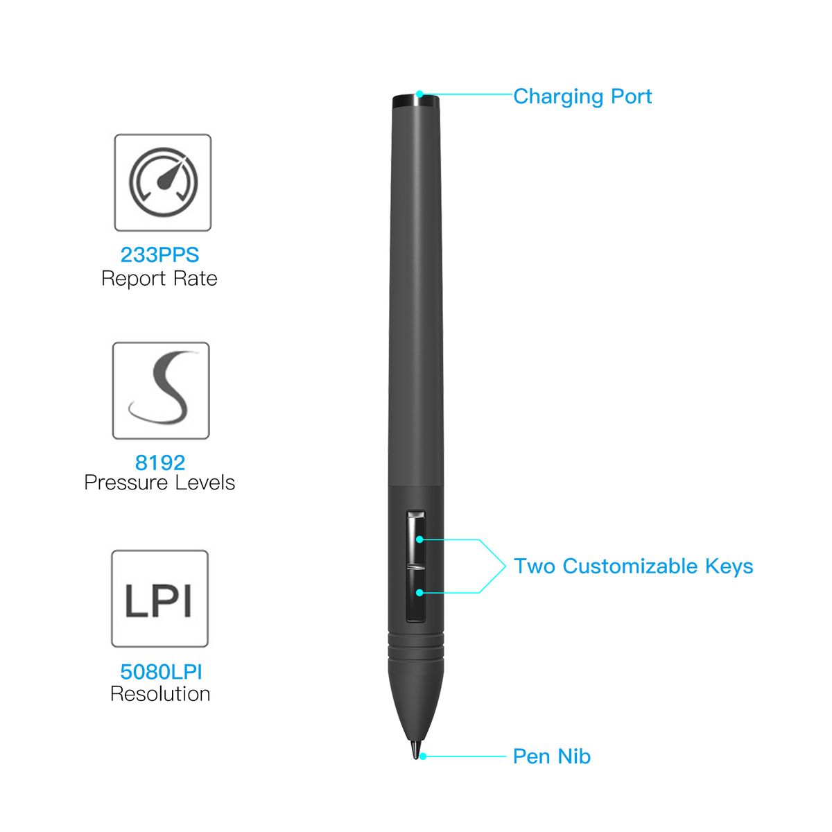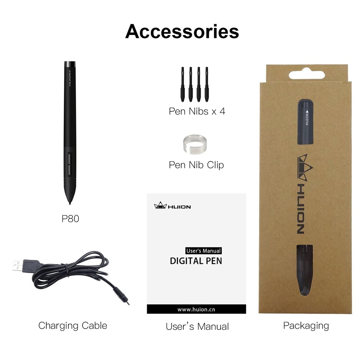 Huion PEN80 Battery Stylus Rechargeable Pen 8192 Levels Pressure with Charging Cable 4pcs Pen Nibs Pen Clip for Huion NEW 1060PLUS Graphics Tablet