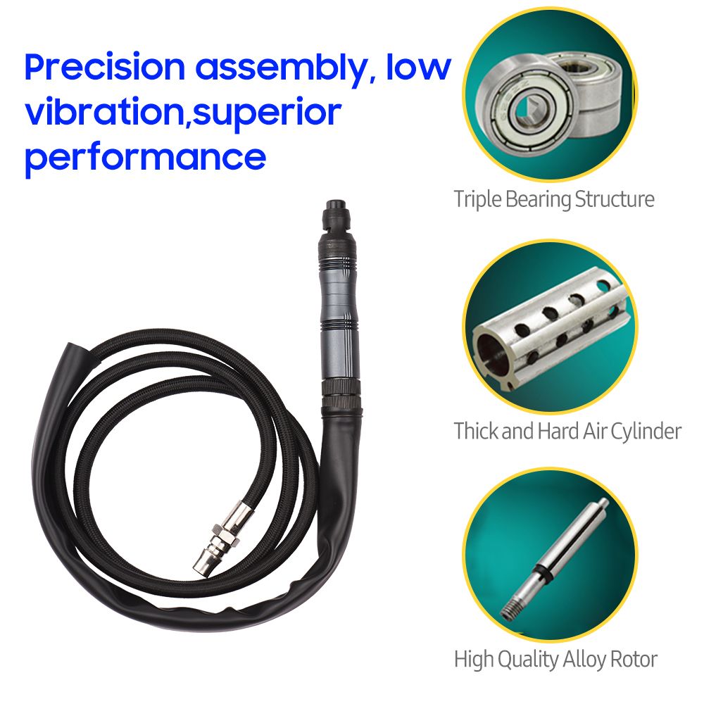 Non-slip handle, comfortable to hold. 1/4 quot; air inlet, with 125cm long air hose for flexible use.