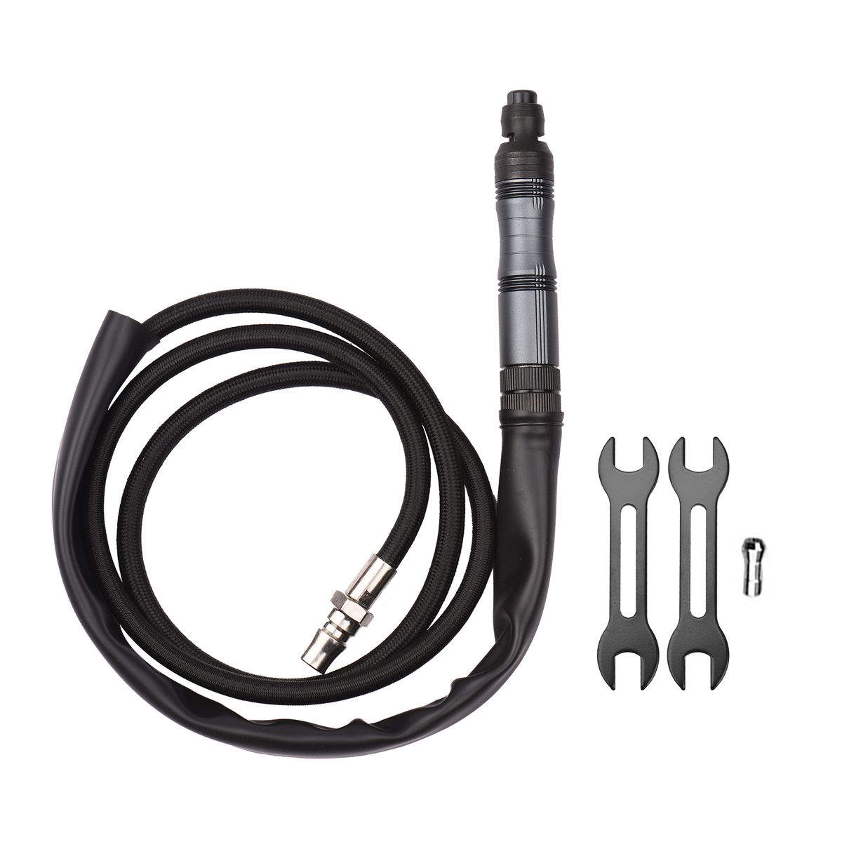 This air-operated rotary pen with air hose is multifunctional and suitable for sanding, grinding, polishing, deburring, drilling, engraving and more by using high-speed rotation of various accessories prepared by yourself. 2 collets and adjustable rotation speed allow more applications. Portable and compact, easy to carry with the plastic box.