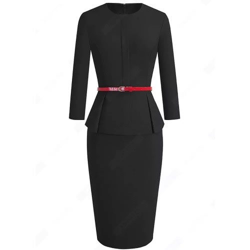 Buy Peplum Belted Pencil Dress- Black in Nigeria