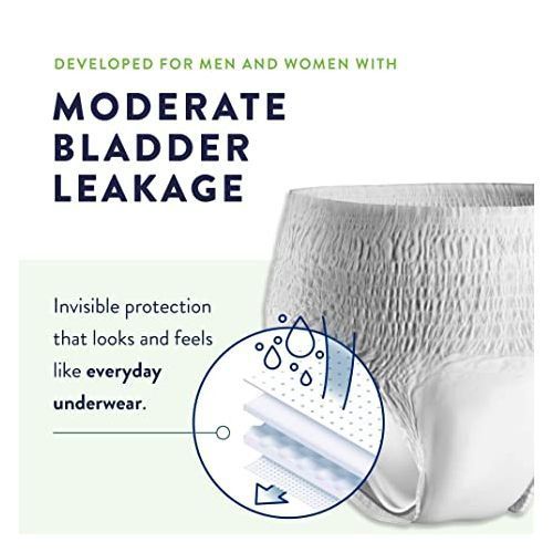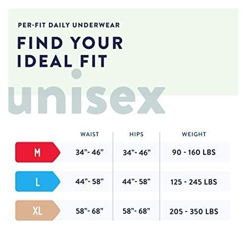 About this itemDesigned for extra leakage protection, Prevail Per-Fit features Comfort-Shape Plus with gentle elastics that shape to your body for a more comfortable and discreet fit than standard adult diapers at a great everyday value.Prevail Underwear is the #1 rated brand in the healthcare industry. Each product is constructed with a discreet core technology that allows for thinner, highly-absorbent material that enables the user to move more freely and confidently.Medium large size fits waist sizes 34 to 46 inches for a snug and comfortable fit. Each Prevail incontinence product features a proprietary Quick Wick layer of material with MaxSoft Technology that provides advanced softness with rapid liquid absorption for optimal product performance.