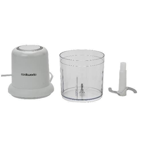 Small but mighty, this Cookworks chopper is the perfect little sous-chef for your kitchen. The stainless steel blade will get to work blitzing herbs, chopping nuts, and sorting out everything in between. Its small size will make it easy to store away, and the blades are removable for easy cleaning. & bull; Power output 200 watts. & bull; 0.5 litre container with 0.5 litre working capacity. & bull; 1 speed setting and pulse function. & bull; Removable blades.