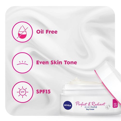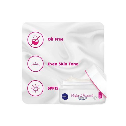 NIVEA Perfect & Radiant Even Tone Day Cream SPF 15 enriched with Eventone Pure Active, Vitamin E and SPF 15 works to gradually enhance skin complexion and visibly reduce the appearance of dark marks, while protecting your skin from harmful effects of the sun. Place your order for this amazing product from rehmie Nigeria and have it delivered to your doorstep at an amazing price.