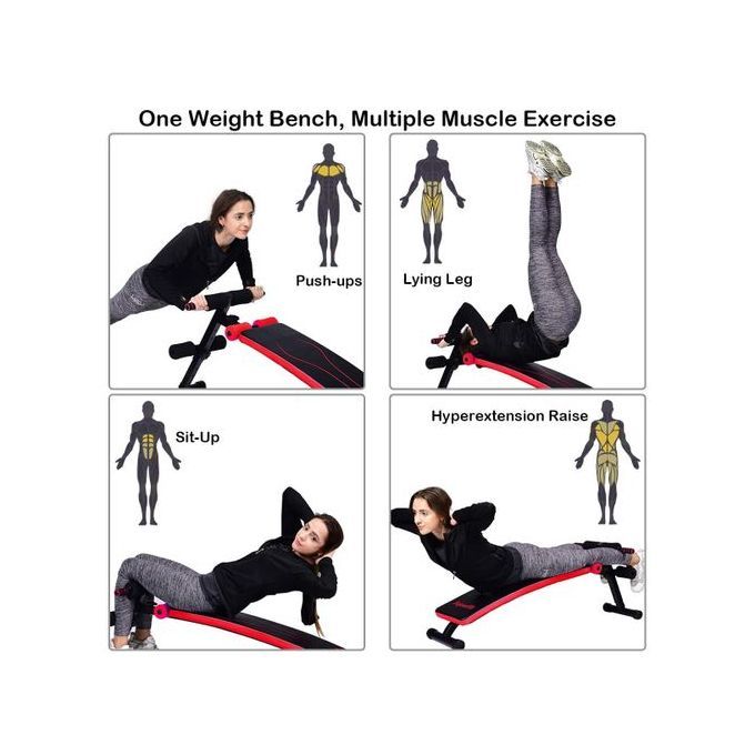 It is made of steel material which last long and its rust free, the fitness equipment sit-up bench fit into every home for easy strengthen the abdomen, back and hips which burns out excess fat for a well stream line body shape.get quick result by lying flat back facing up which ease away back pain, suitable for using belly fat, good for tommy flattening and lap exercise.