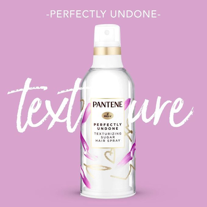 Want perfectly imperfect hair with little effort? Trying to give your hair that gorgeous beach waves look? Use Pantene Perfectly Undone Texturizing Sugar Hair Spray. This never-sticky sugar formula livens up your look with the perfect dose of woke-up-like-this texture. Get that untamed tamed style you want with healthy vitamins like Pro-Vitamin B5 and vitamin E. And that scent? It's blackcurrant and a fresh bouquet of floral jasmine. Specifically designed to be paraben free, so you can go ahead and cheat your way to an other #greathairday.Water, Alcohol Denatured, Sodium Chloride, Magnesium Sulfate, Sorbitol, PEG-40 Hydrogenated Castor Oil, PVP, Fragrance, Citric Acid, Panthenol, Panthenyl Ethyl Ether, Histidine, Tocopheryl Acetate