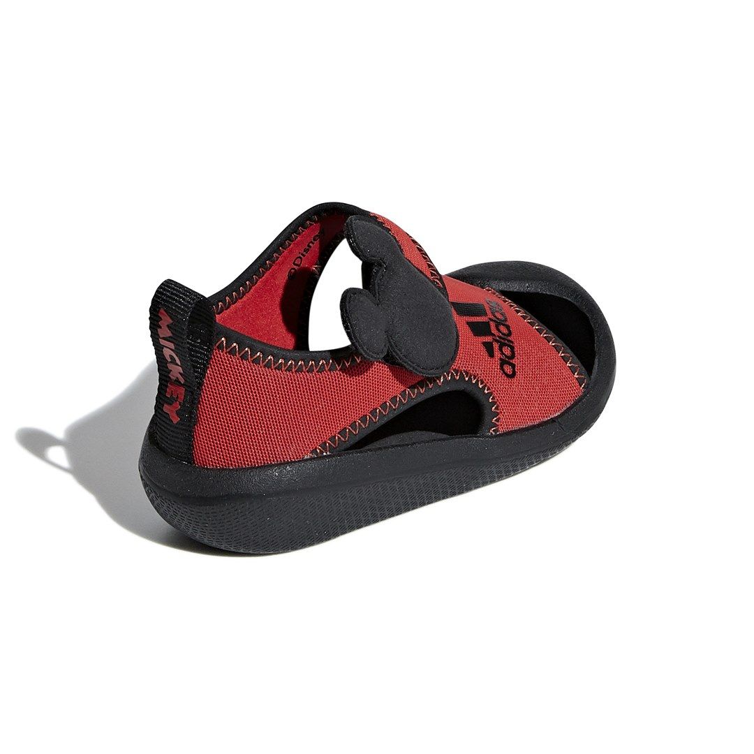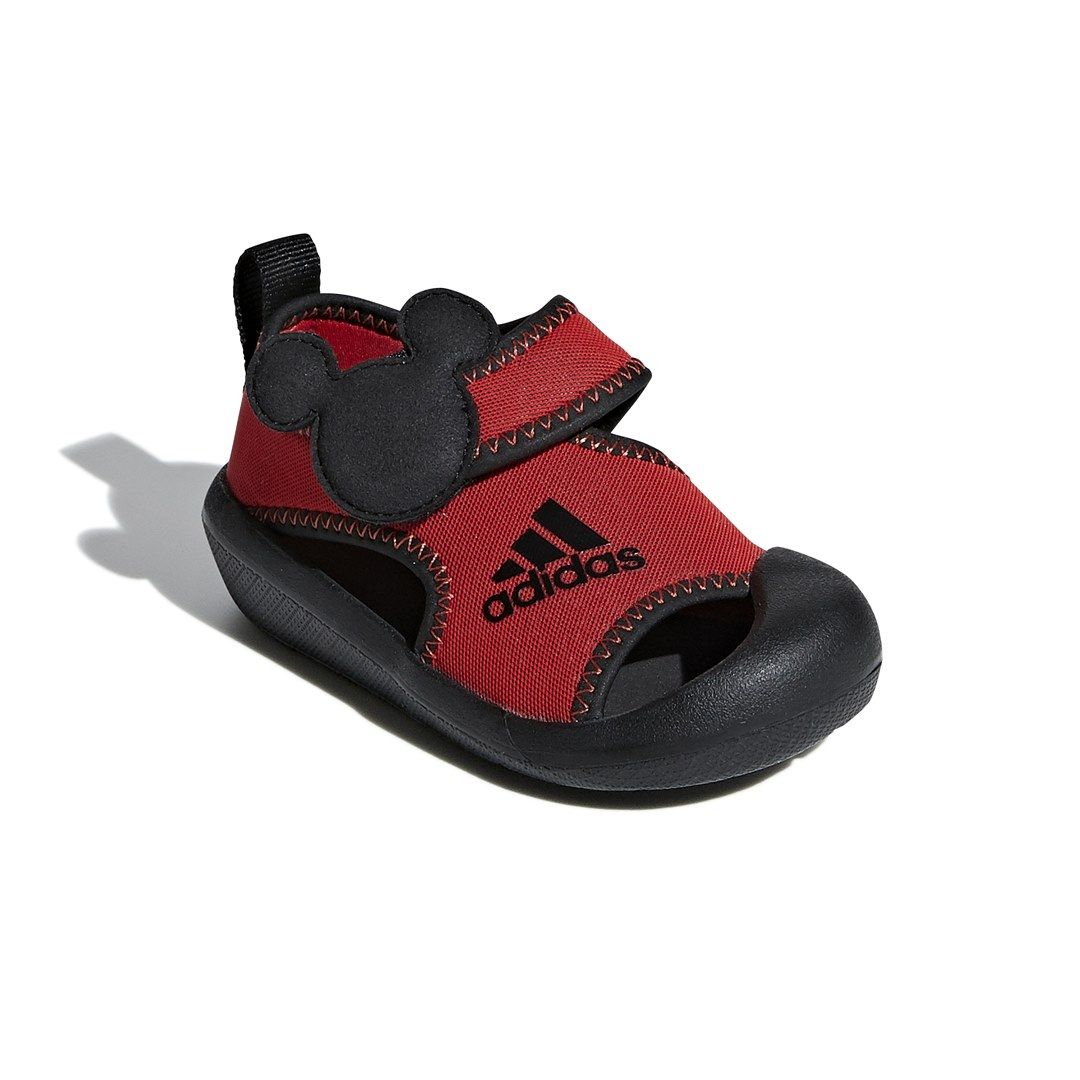 quick-drying textile upper. A hook-and-loop closure features a Mickey Mouse silhouette. The Disney-themed sandals have a rubber cupsole that offers a sturdy grip on wet surfaces.