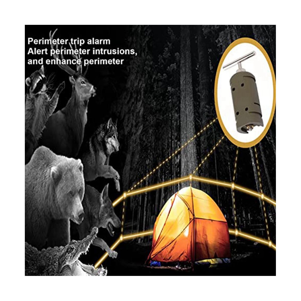 Early warning system: This alarm can warn in perimeter break -in and improve perimeter security on private property, campsites, f, barns or restricted areas.
