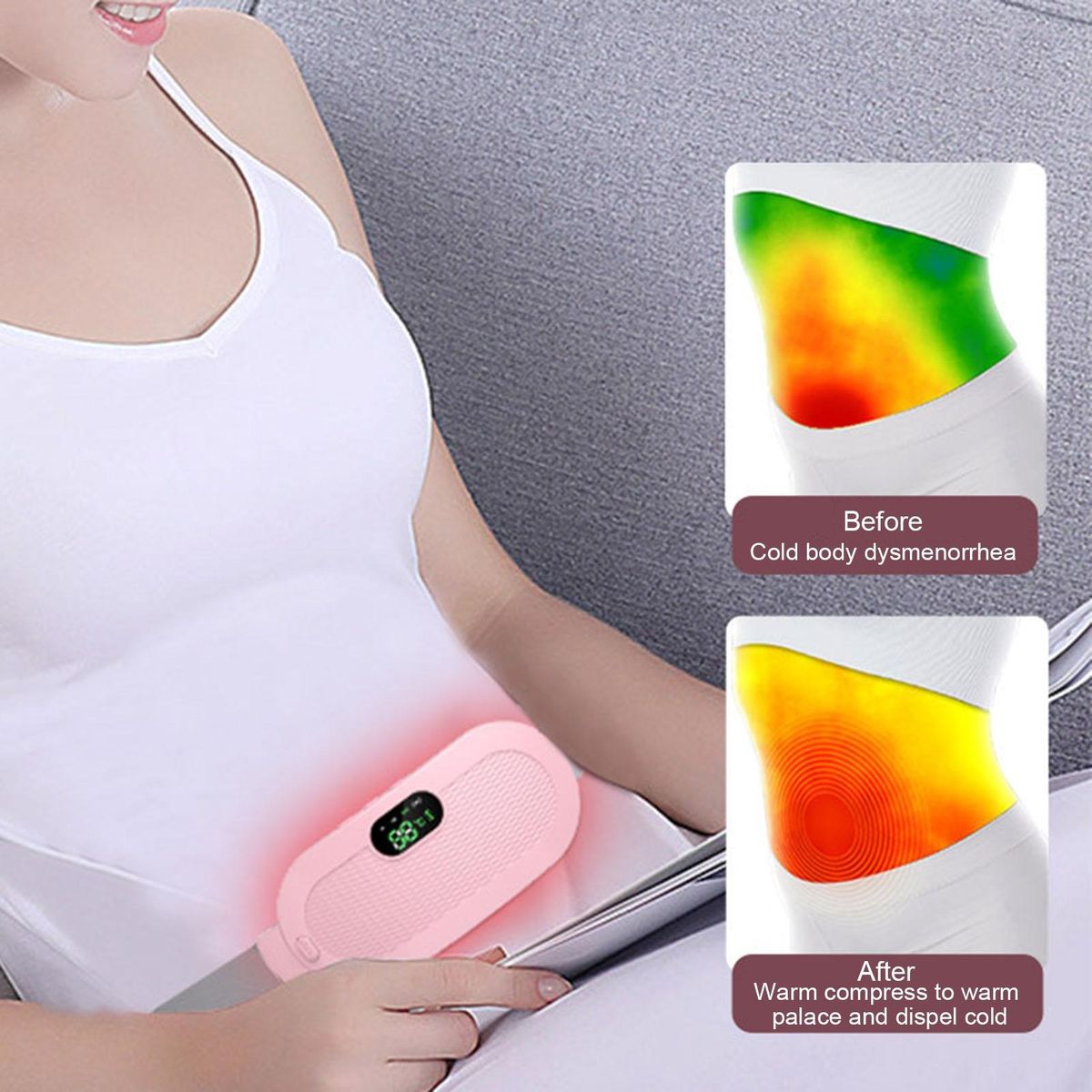 Our period heating pad, the ultimate solution for relaxation and comfort in your daily life. this innovative device is perfect for those moments when you're sitting in front of your computer or using your smartphone, providing you with countless hours of effective massage therapy. .