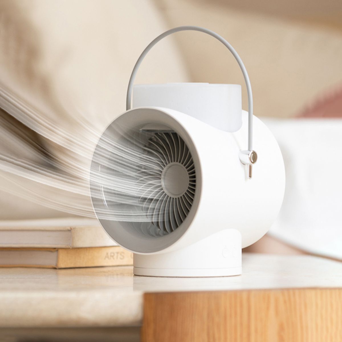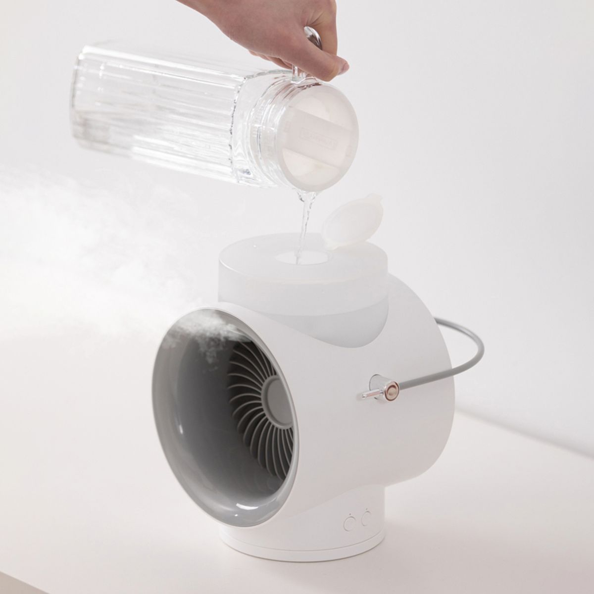 You can add ice cubes and water into the 350mL water tank for evaporative misting cooling in this personal table fan, bring more misting in a short time and drive away from the dryness for you. In summer, just press the switch to enjoy the air-cool, it is your summer life's best partner.