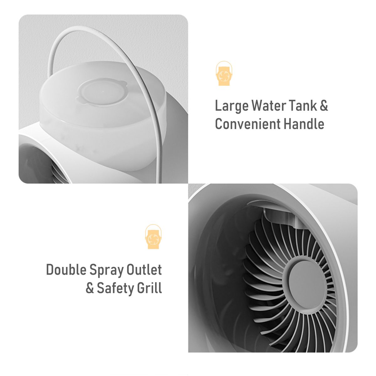 [Double Spray Outlet]The air cooler with a double spray outlet and cool air, enjoy a healthier room environment with cool and humidified air produced in no time.