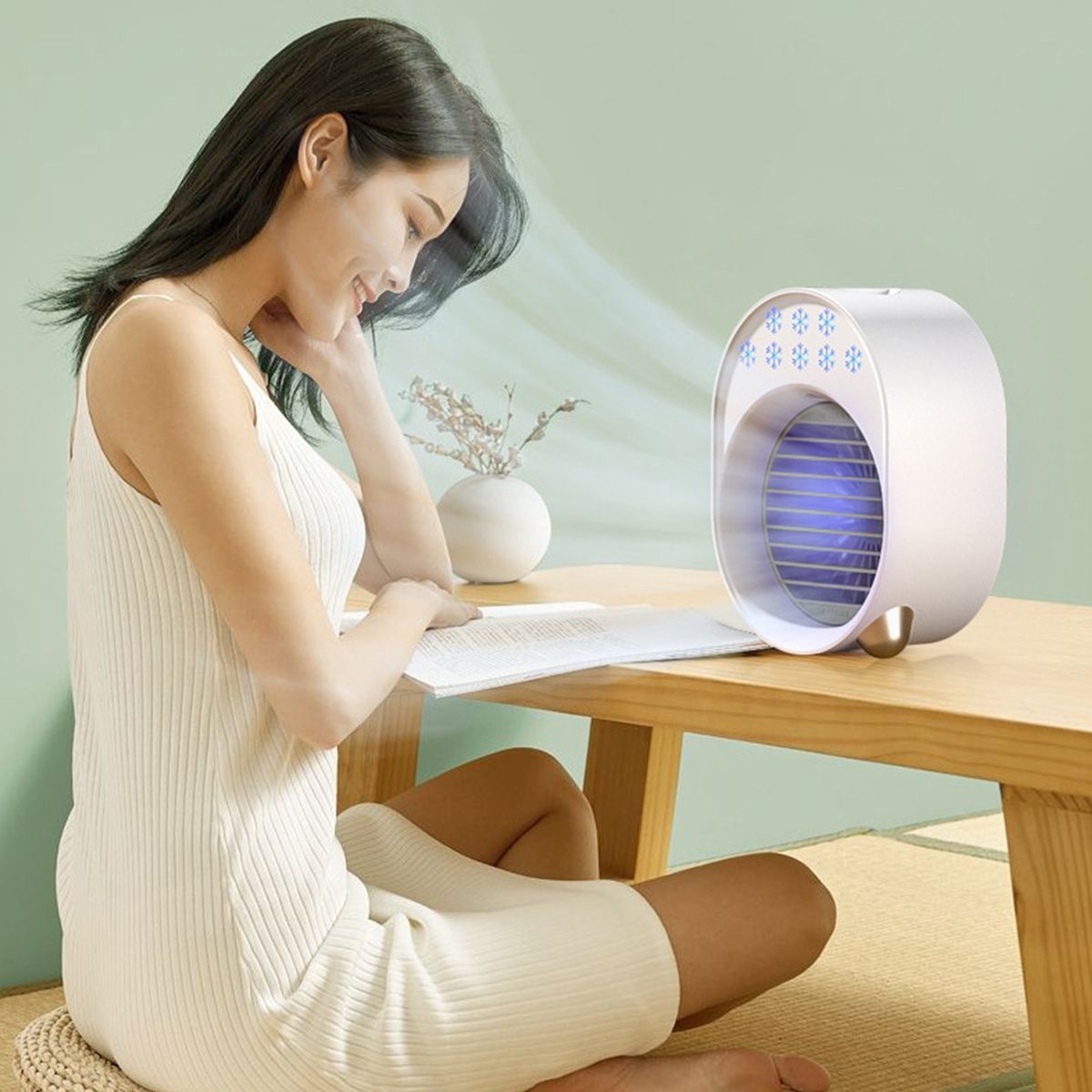 [Widely Applicable]Compact amp; portable size, easy to move around, suitable for bedroom, study, office, couch, bed, workspace, dining table evaporative cooling.