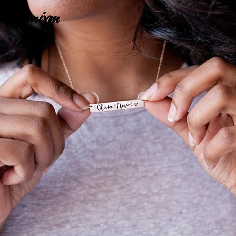 Feature:Customized Engraved Modern Script Illustration Heart Necklace For Women,Link chain,initial necklace