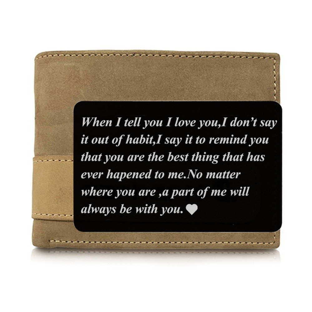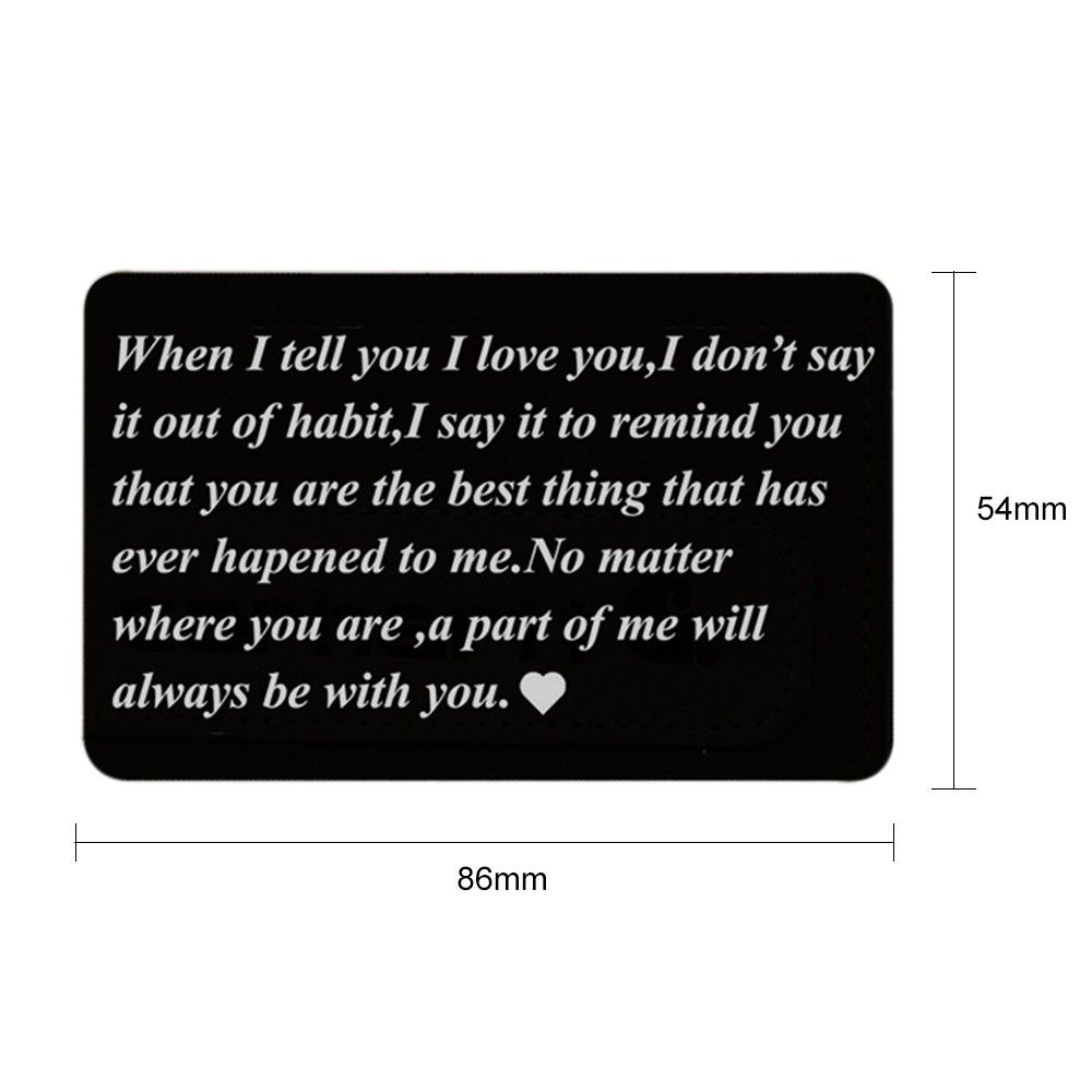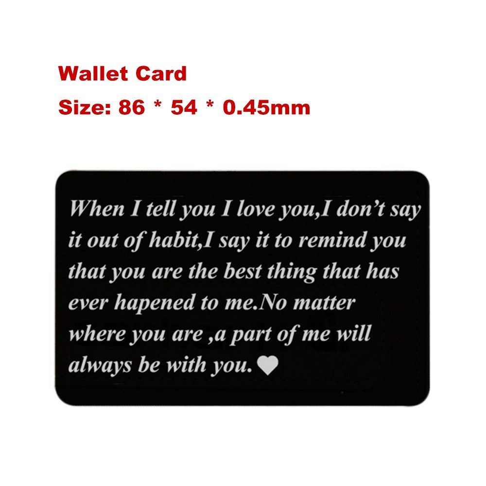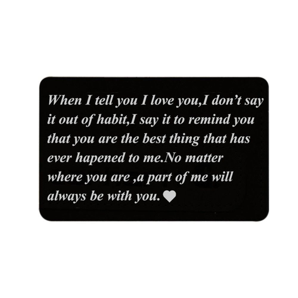 This is a personalized card that is engraved message, and the message will not easy to fade or scratch off! It is a nice gift for your husband/wife or boyfriend/girlfriend.