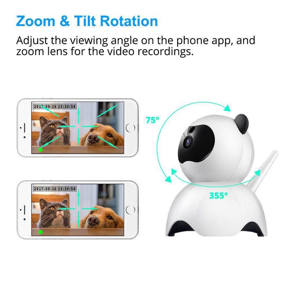 This camera two way voice chatting , high quality sound , the pet can hear your voice anytime even if you are meeting or travelling . For extra multi user mode , one camera can multiple devices watch online monitoring video simultaneously. The outstanding night vision has wide vision of?720P HD network camera with cute shape. Adjustable viewing angle of camera ( up , down , left , right rotating ) , you can do remote pet everywhere.?