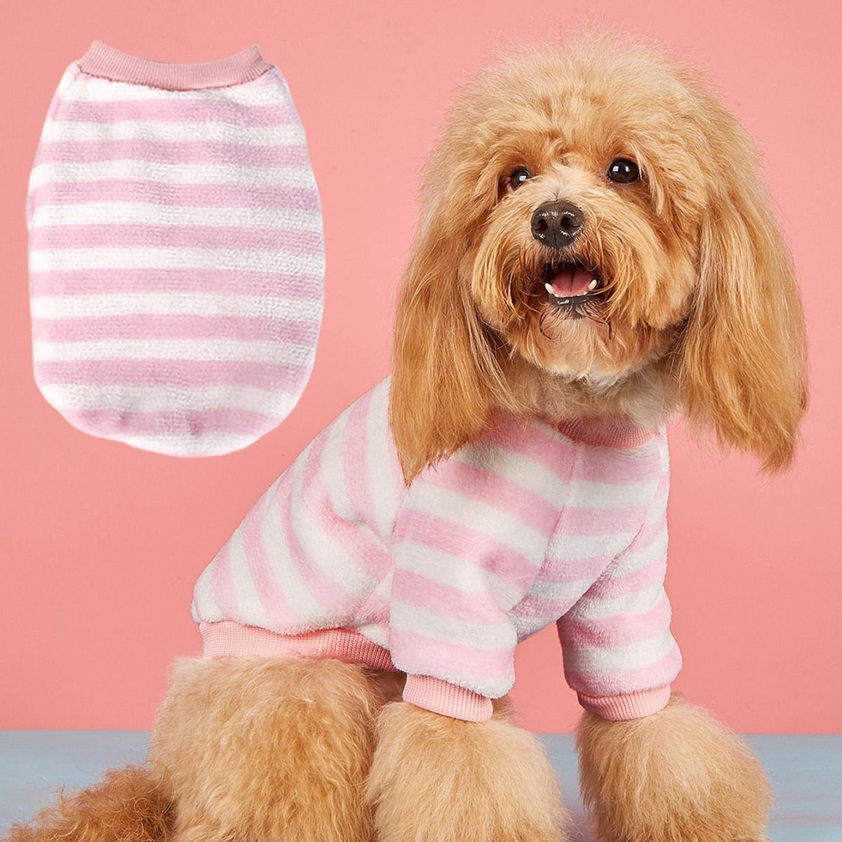 It is a pet vest with threaded cuffs and hem, which is elastic and easy to wear and remove.