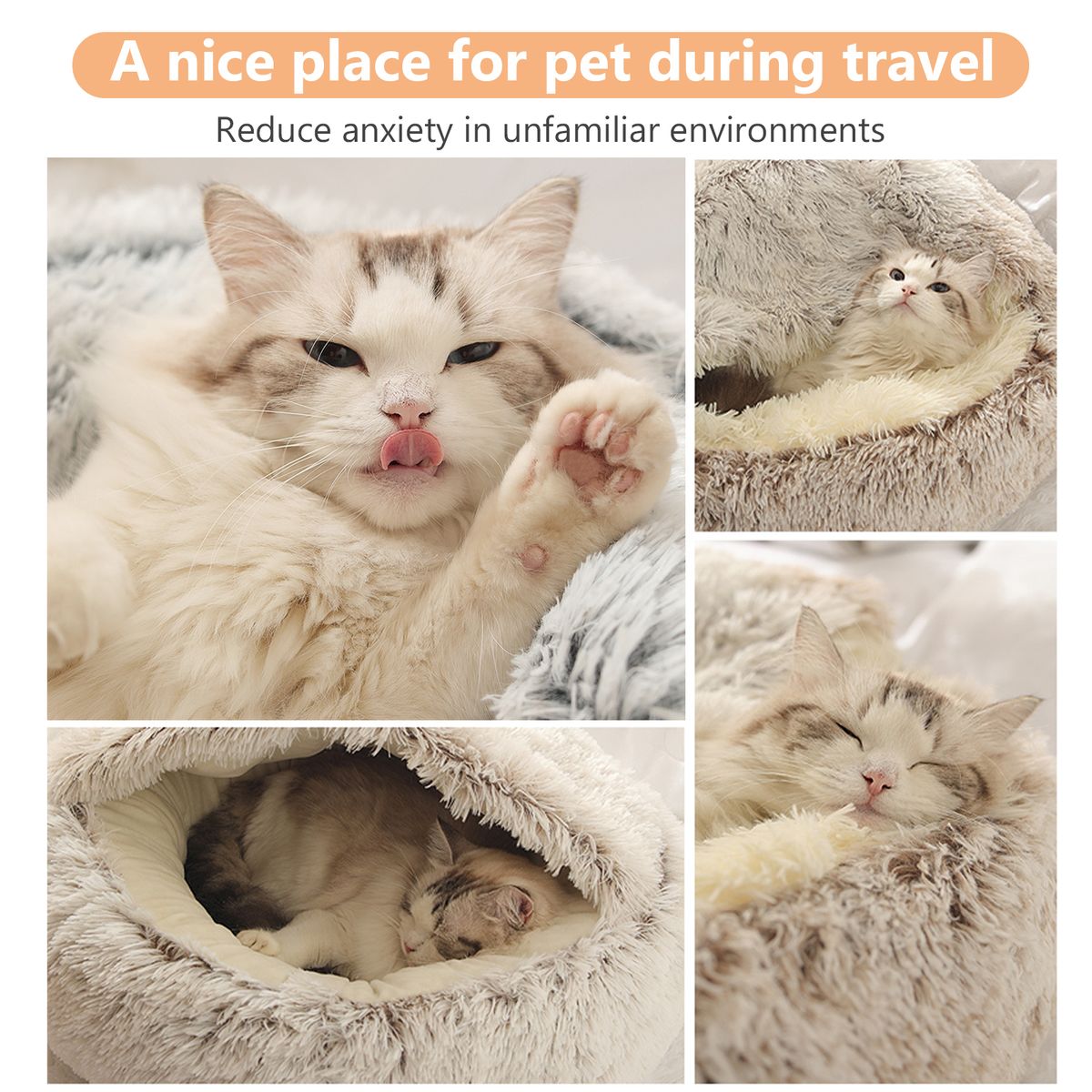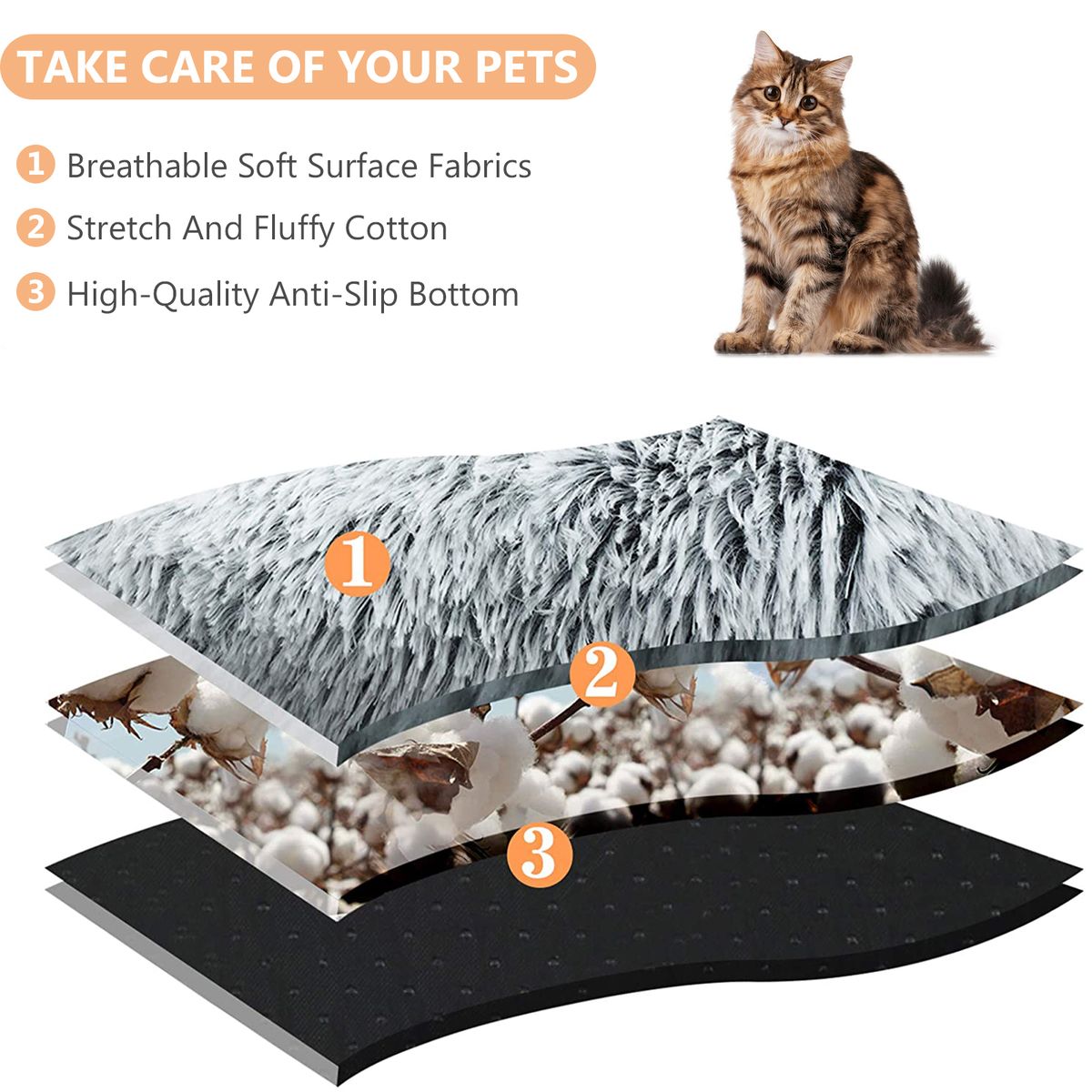 High-quality: Made of 3 type of material- high-pile fabric, faux cotton and sponge, all of these is safe for cat and dog. This fluffy bed provides them a comfortable place to rest and sleep.