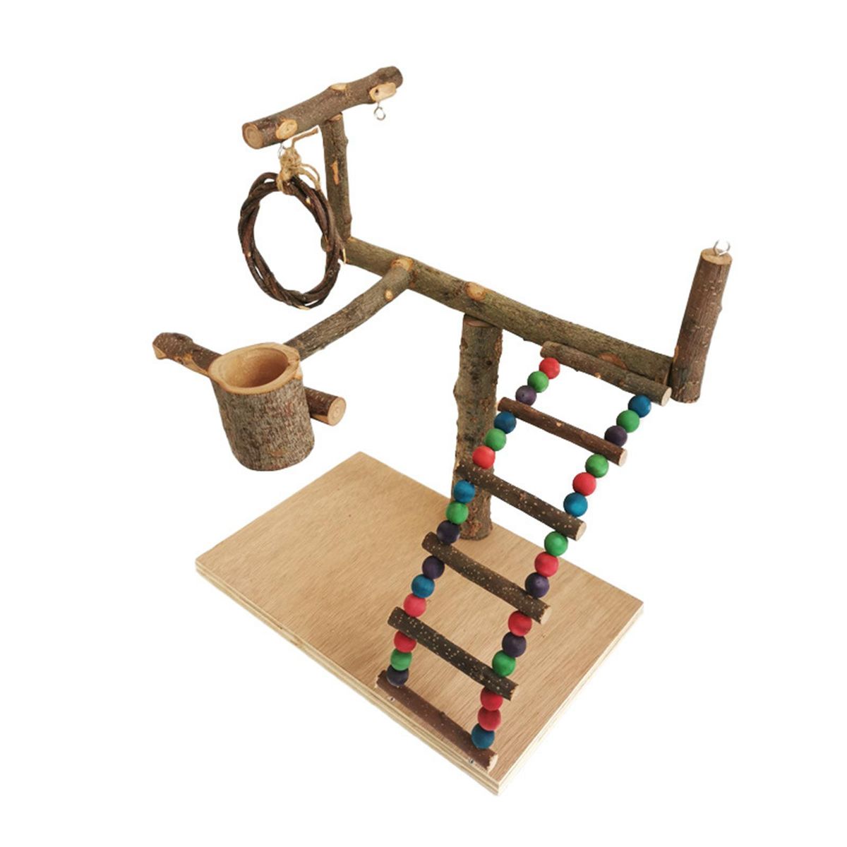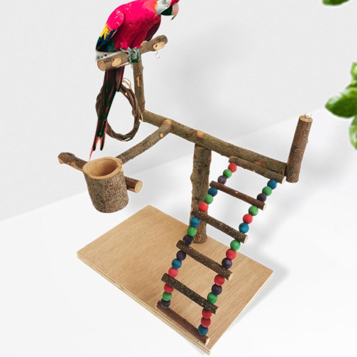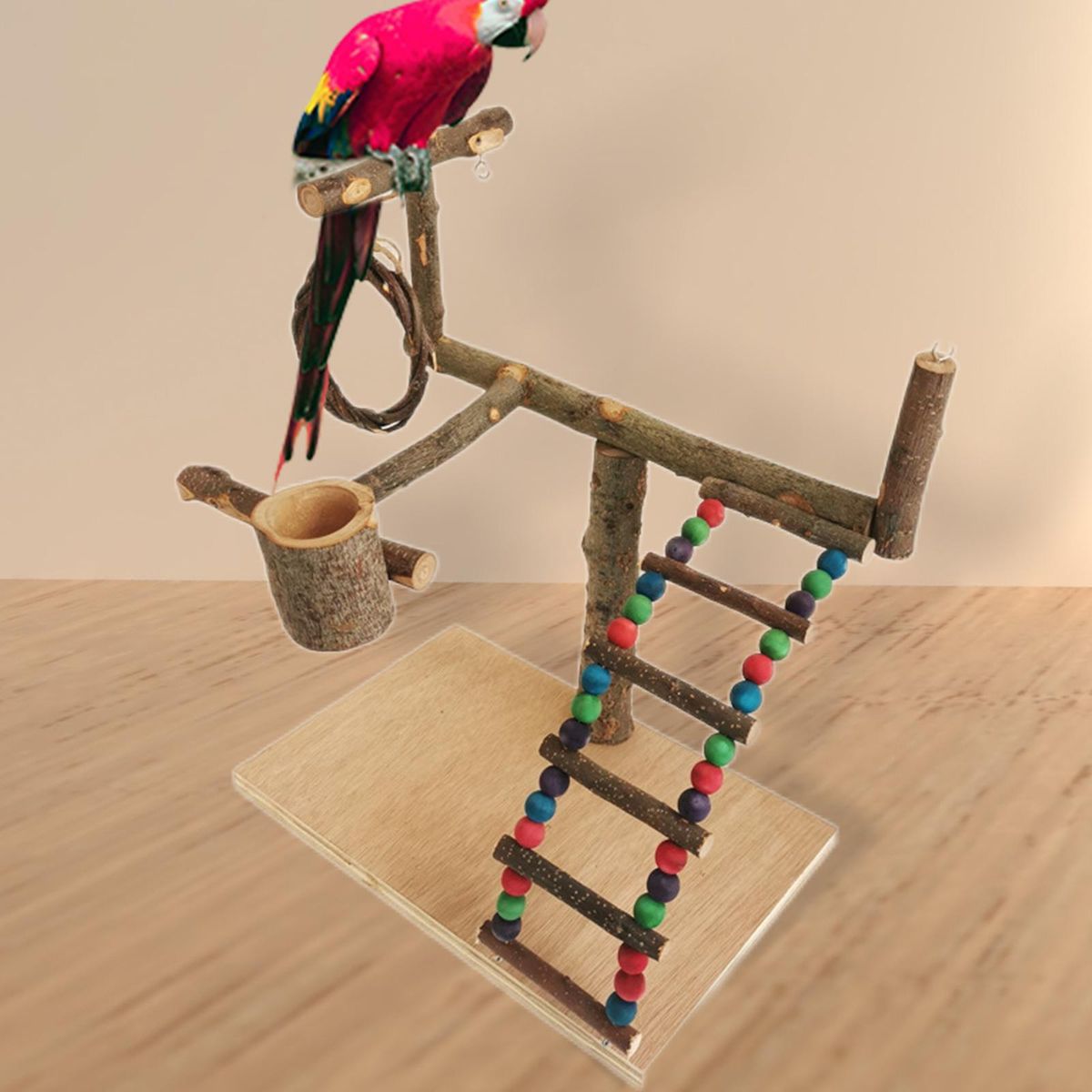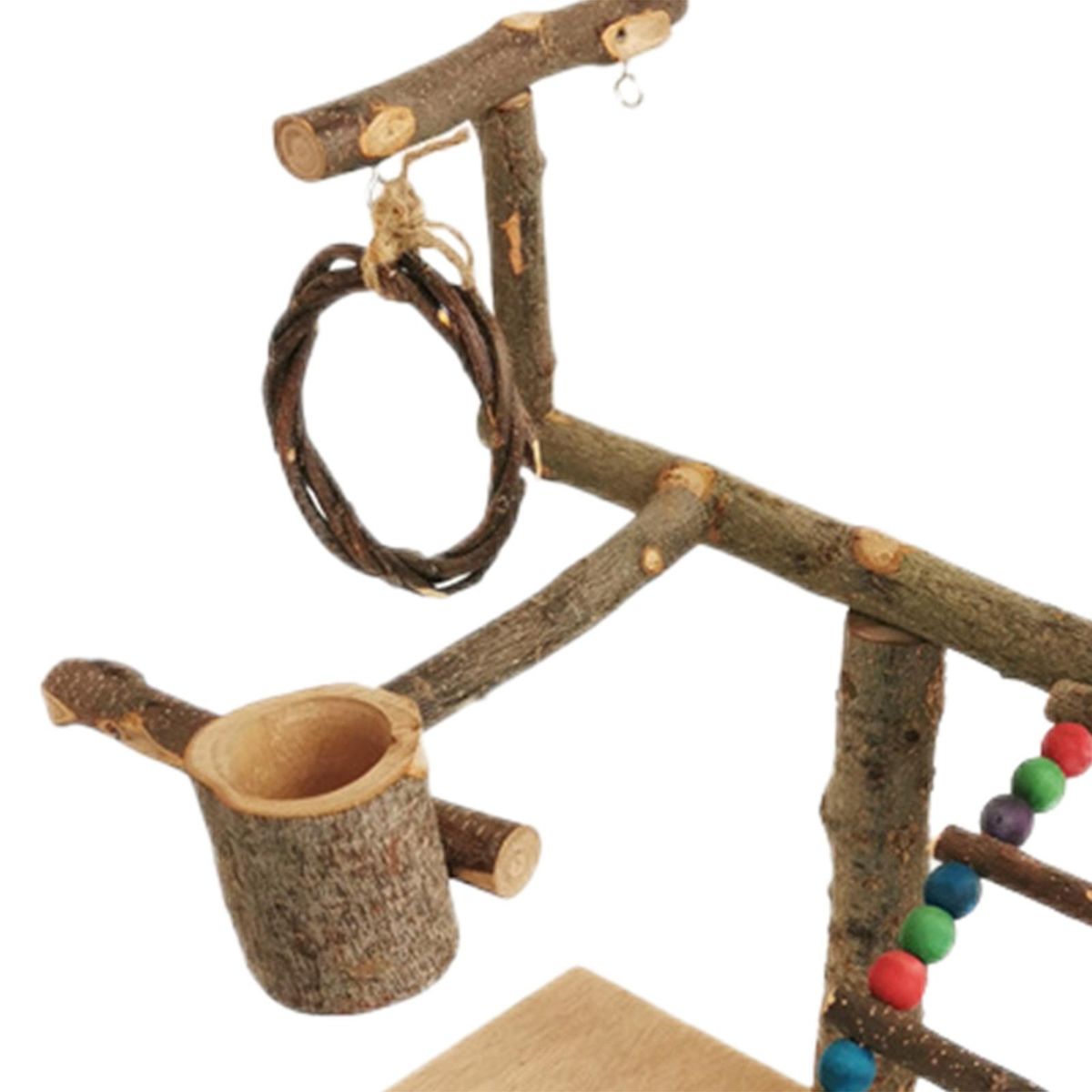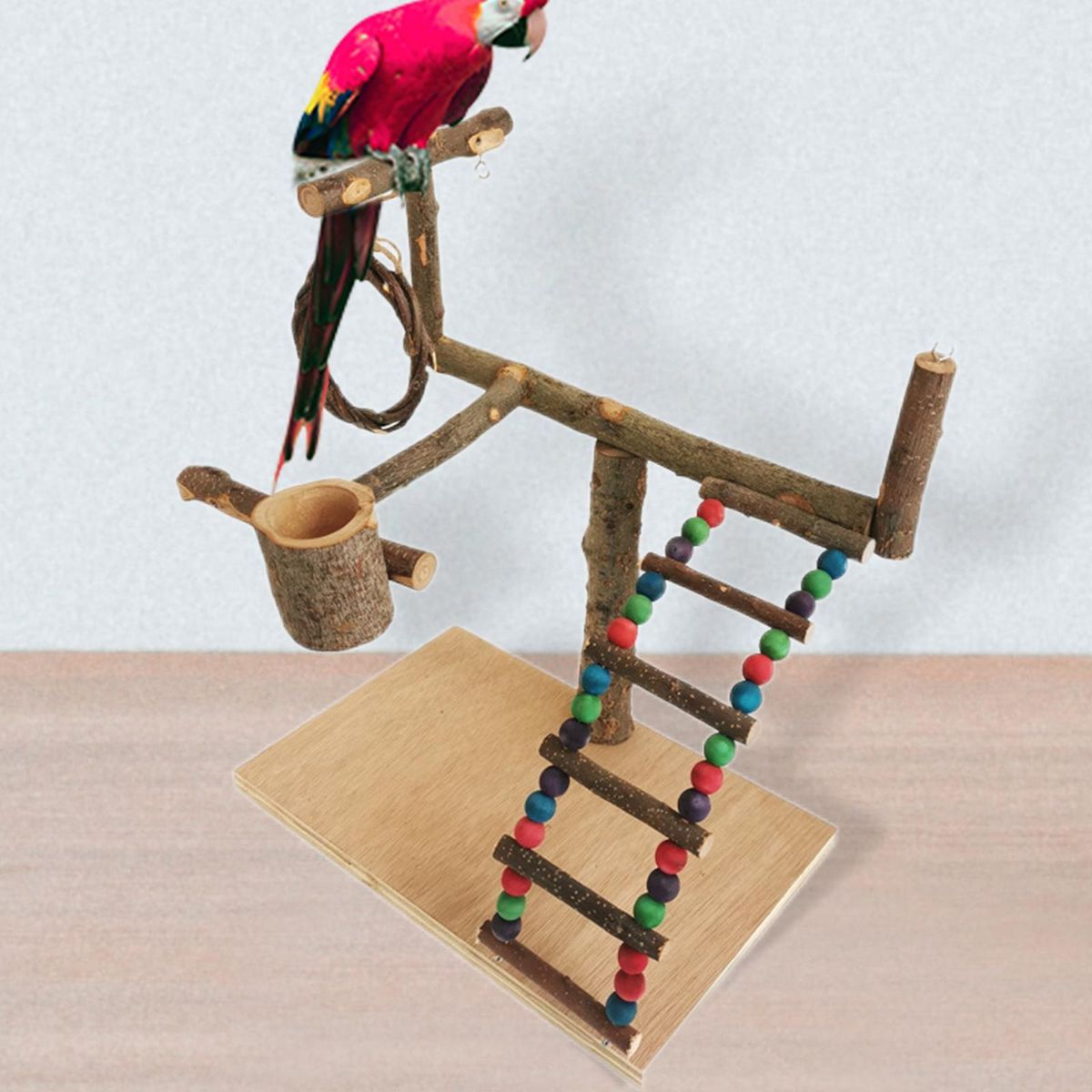 Wooden Parrot playground: The parrot play perch is made of wood, more sturdy and more stable.