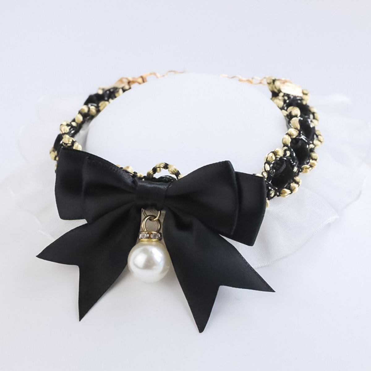 Designed with imitation pearl pendant, bow-knot ornament and lace trim, this pet collar could be your top choice for decorating your lovely pet dog or cat, making them stand out from the pack when going outdoors.