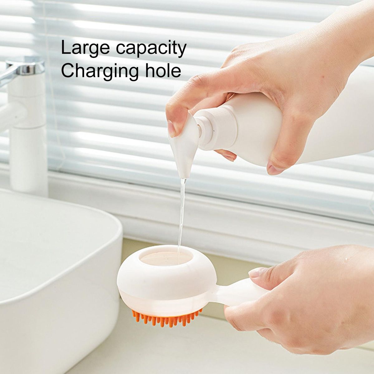 The pet brush, a must-have grooming tool for your furry friend! this innovative brush features a soap and shampoo container dispenser, making bath time a breeze. with its large-capacity liquid filling port and air-tight liquid outlet, you can say goodbye to worries about leakage.