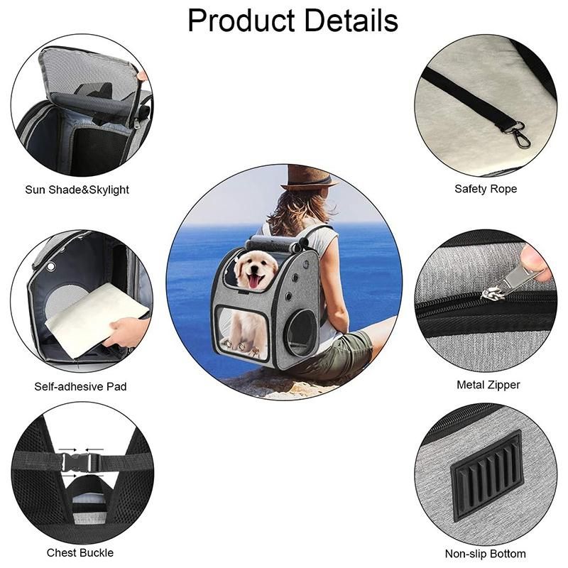 Detailed Information About The Product:[Durable and Secure]-cat carrier backpacks with firmly reinforeced structure,It's more durable and prevent itself from collapsing on your pet while traveling.can provide roomy space for your growing pet to stay comfortably during the tripcarrier and easily fits most small sized dog,cat,rabit and other small animals up to 10 lbs.