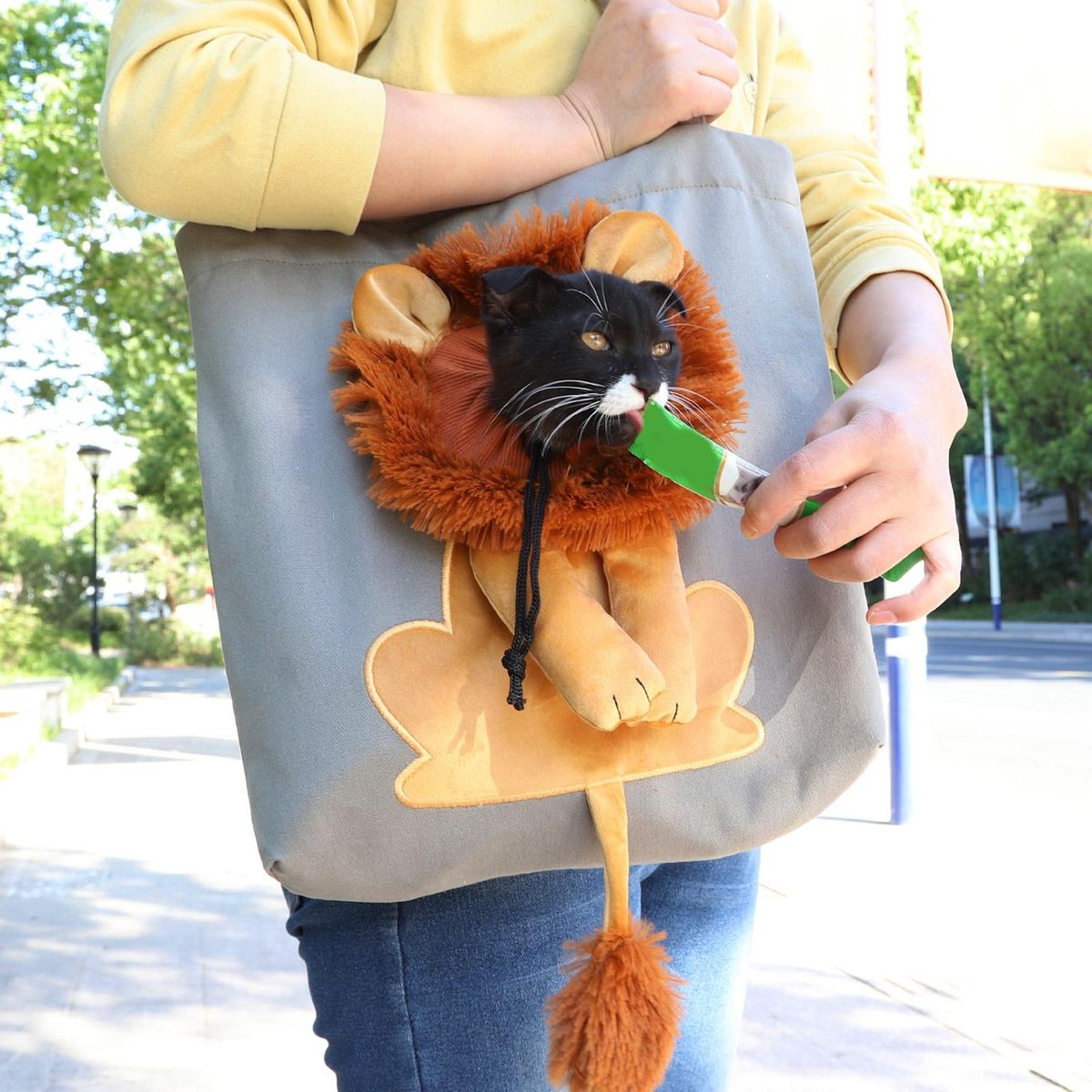 A pet carrying bag with lion design, cuteness and exquisite workmanship. Its surface has an adjustable drawstring hole design, which is convenient for pets to breathe.