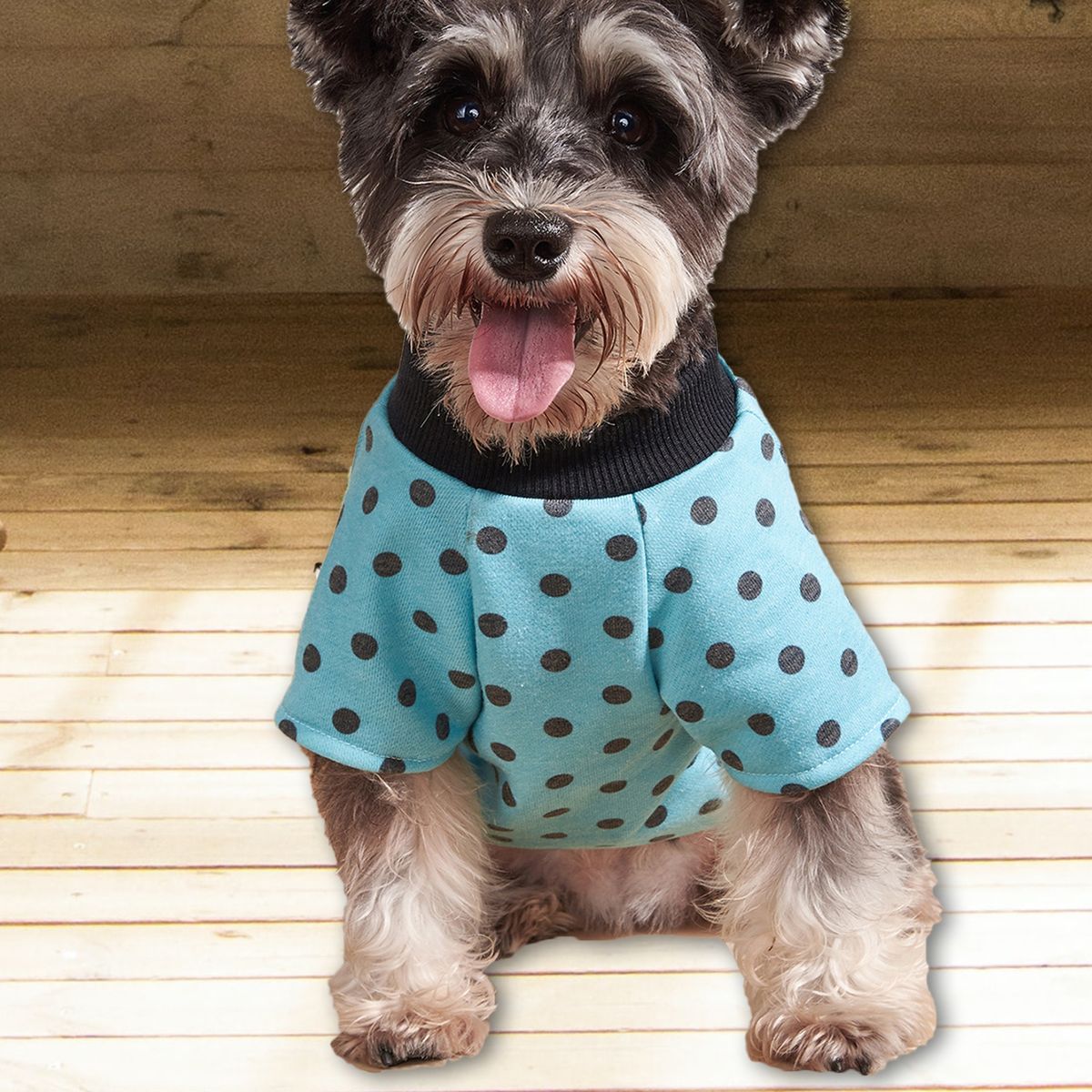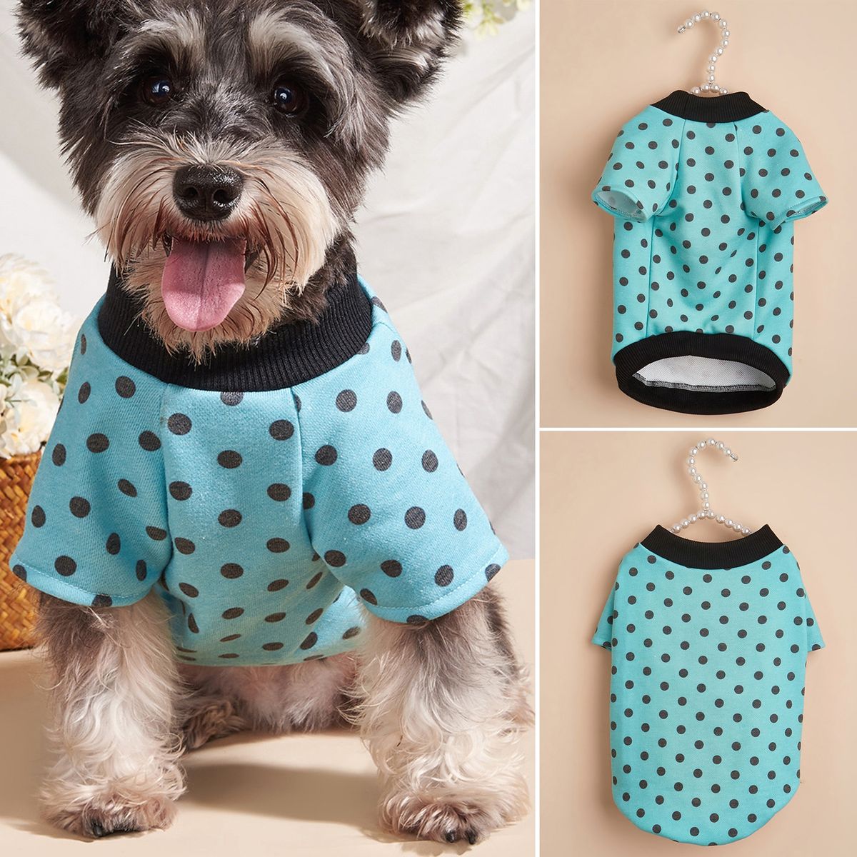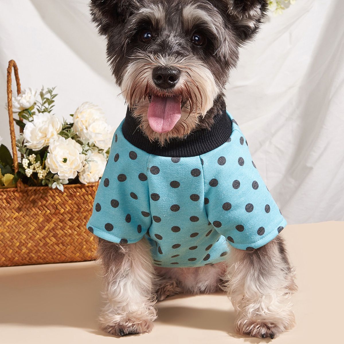 It makes the dog look more elegant and attractive because of the fashion dots print design and silky breathable design. The pet sweater is soft and elastic, and the dog does not feel tight when wearing it.