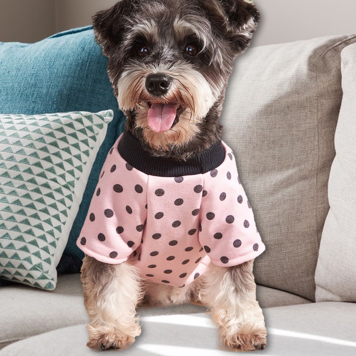 It makes the dog look more elegant and attractive because of the fashion dots print design and silky breathable design. The pet sweater is soft and elastic, and the dog does not feel tight when wearing it.