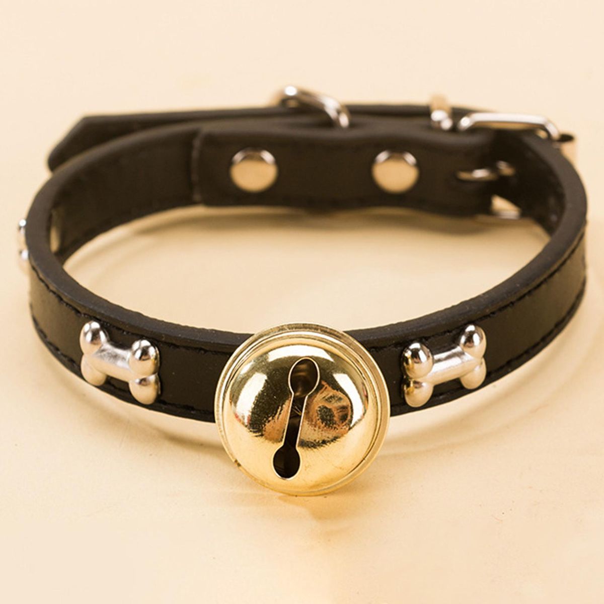 A pet collar is decorated with claws and bones, and is equipped with bells. It is exquisitely made to make your pet more fashionable and cute.