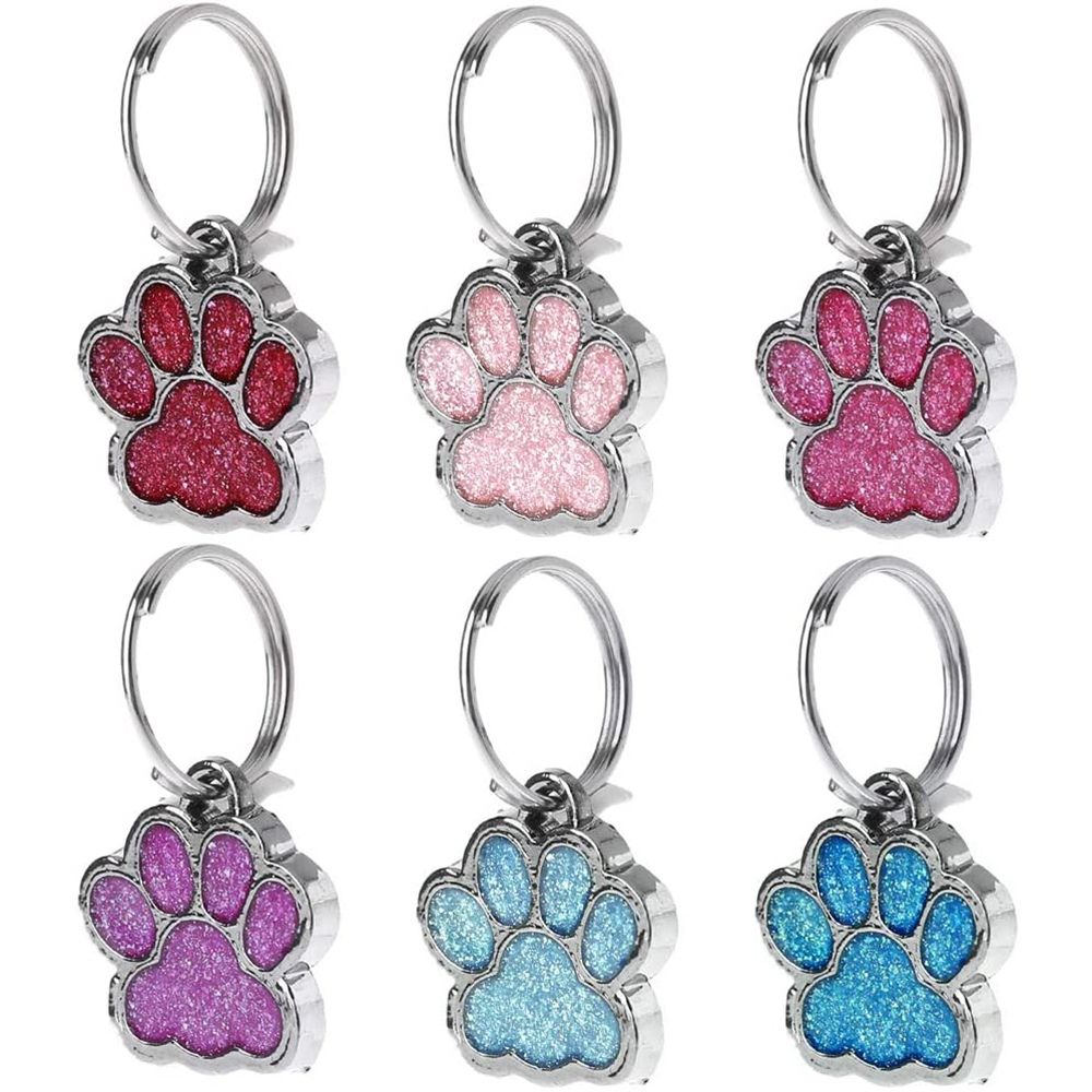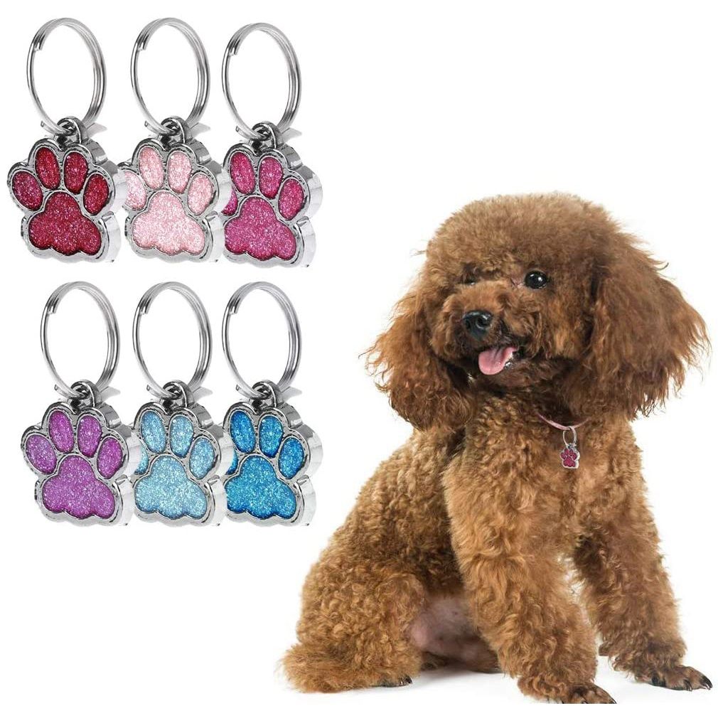 Pet Collar Tag Pet Dog Cat ID Multicolor Pet Mini FootShiny Glitter Paw Shape ,make your pets more attractive.