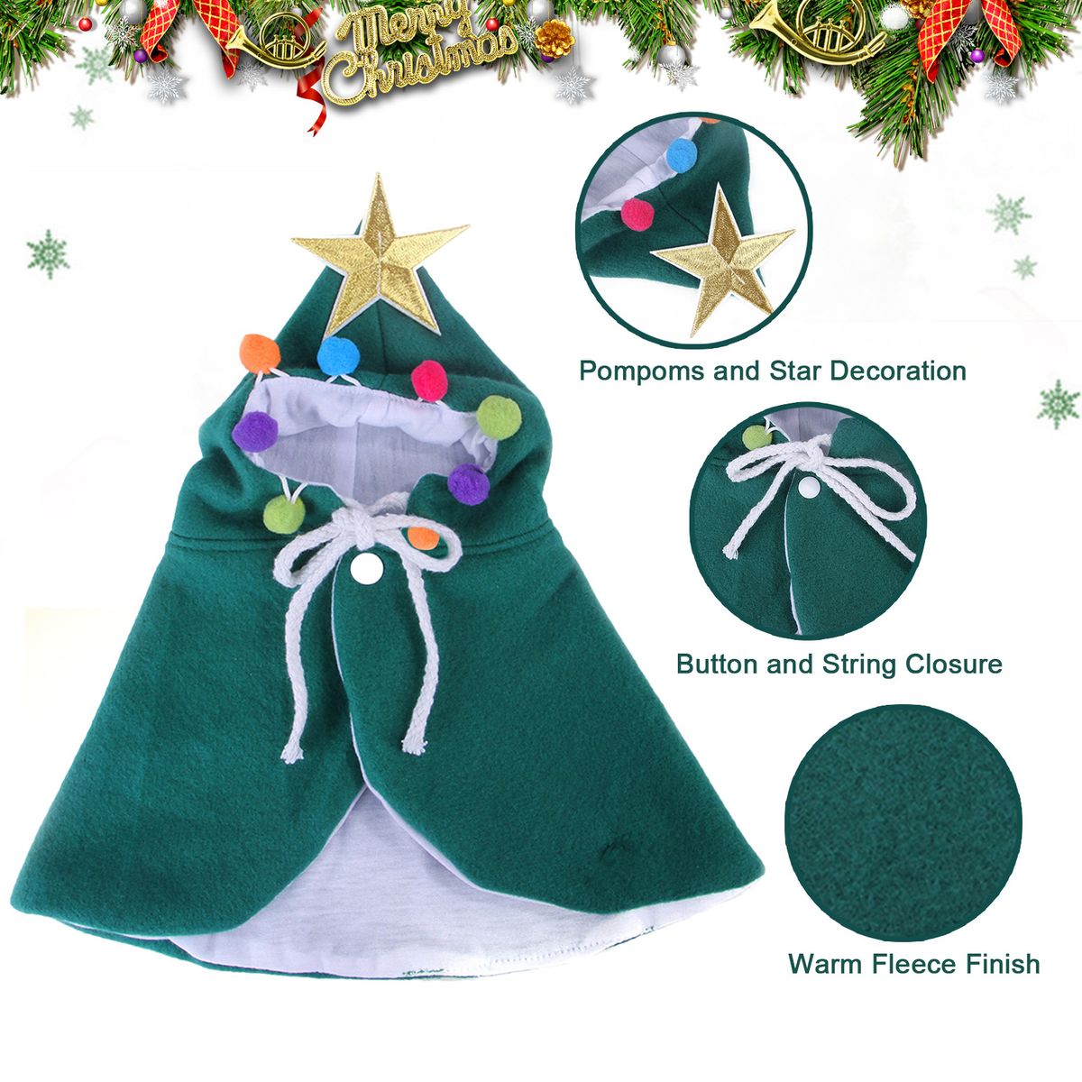 For Christmas: With elements of the Christmas tree, the pompom-star decorated cape brings a colorful festive Christmas feeling.