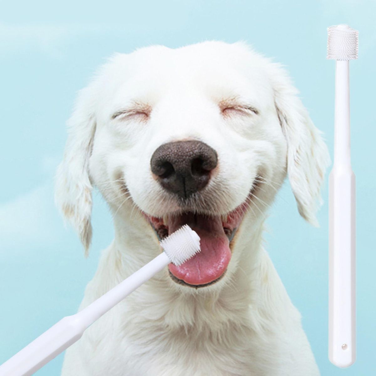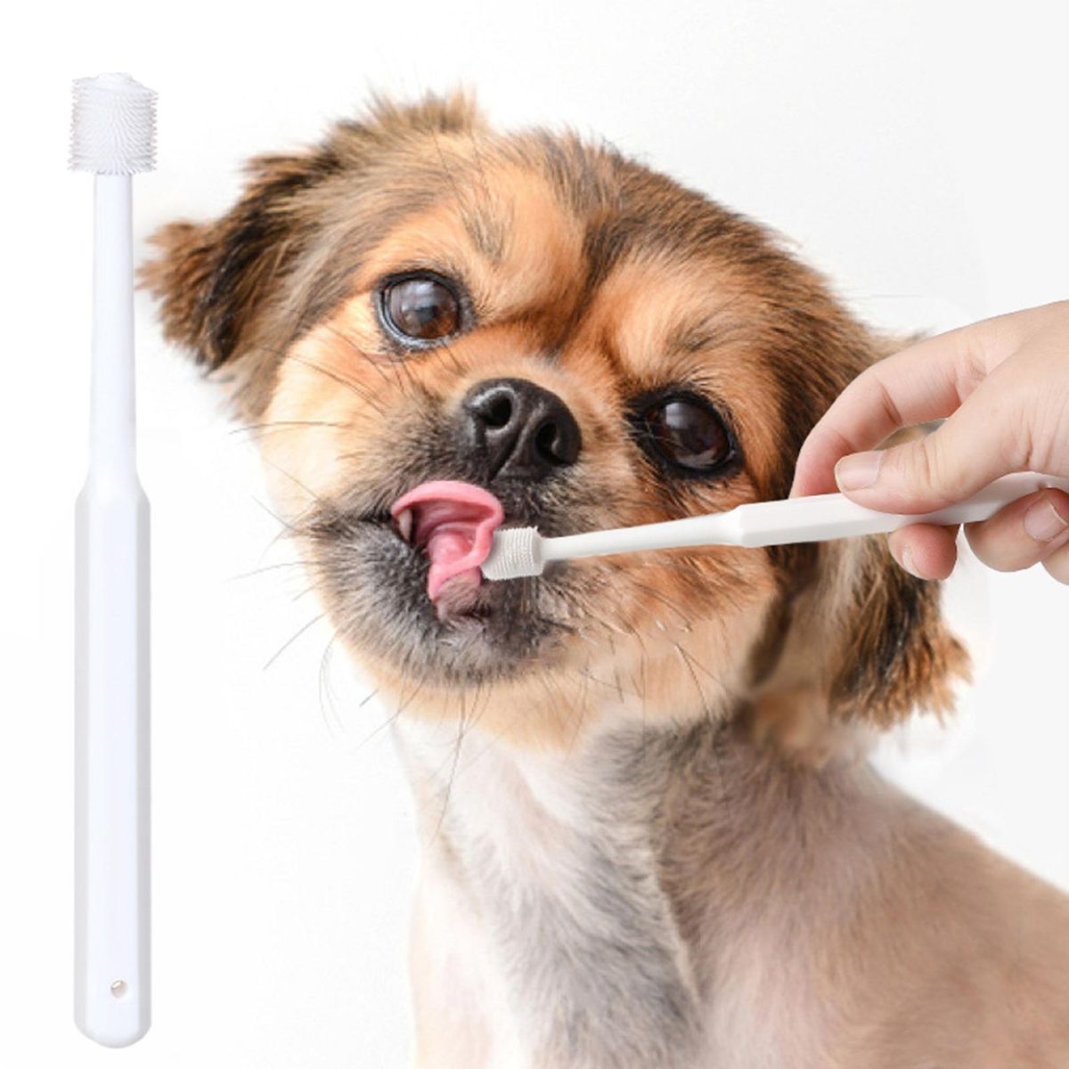 Our pet toothbrush, a must-have for maintaining your pet's oral health. this toothbrush is designed to clean your pet's mouth thoroughly, removing food residue and eliminating bad breath. it helps strengthen their teeth and prevent oral diseases, ensuring a happy and healthy pet.
