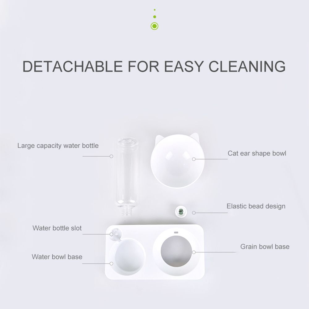 Safety Material: This pet bowl base is made of environmentally PP materials, safety and not easy to break. The water bowl is made of non-toxic and safe PET and the bowl is made of non-toxic and safe ABS.