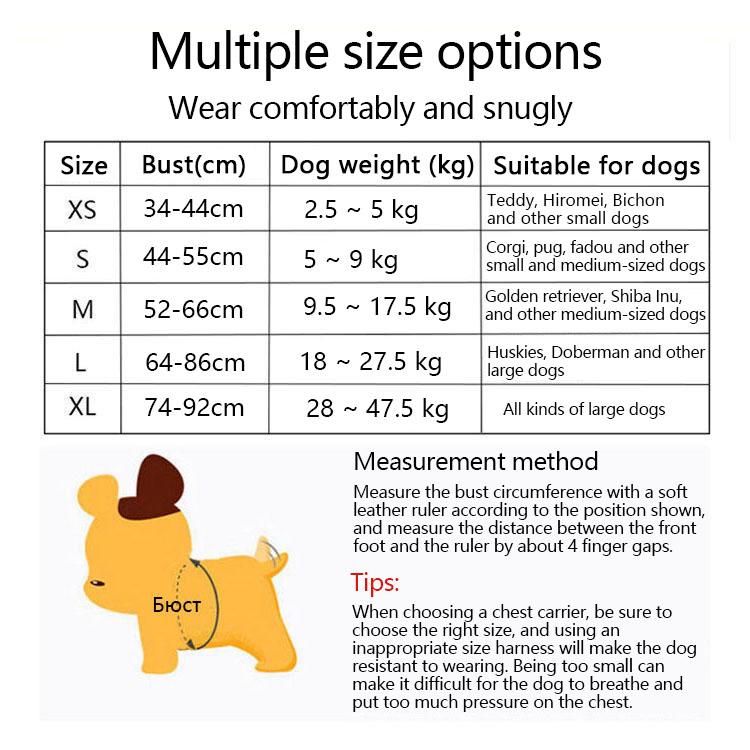 XL: Bust: 74-92cm, Dog weight: 23~44.5kg;
