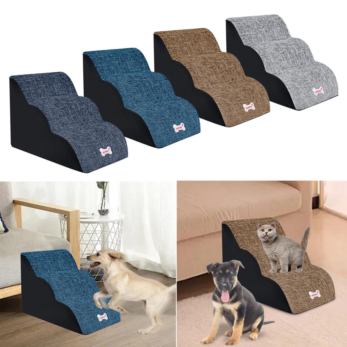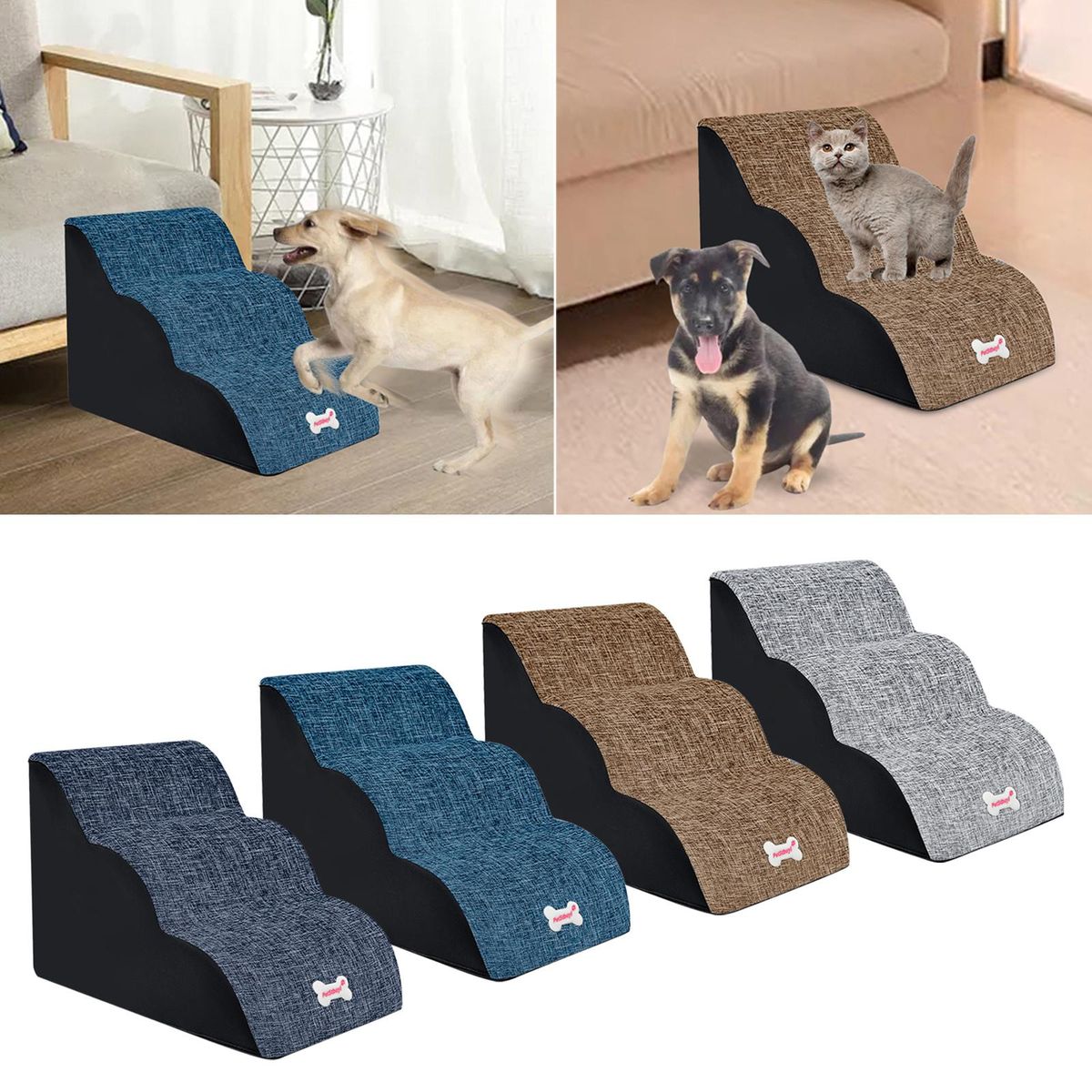【PREMIUM MATERIAL】: The dog stair is made of high quality cloth material, soft and breathable, not easy to deform, climbing up and down is comfortable for your pet. Size60cmx30cmx33cm/23.62inchx11.81inchx12.99inch.