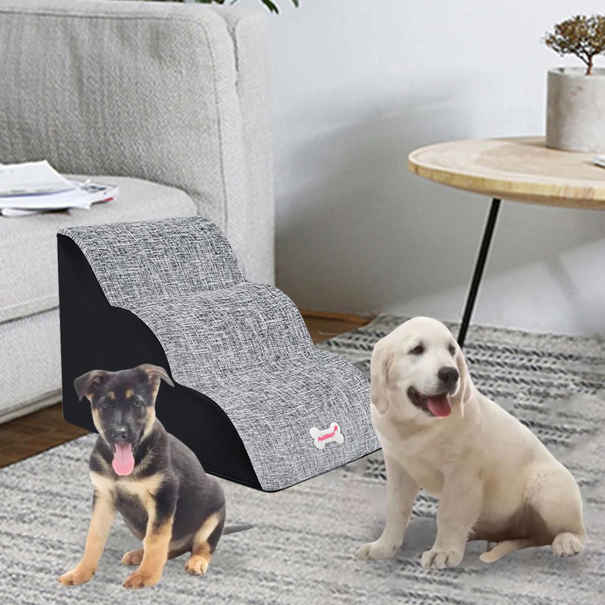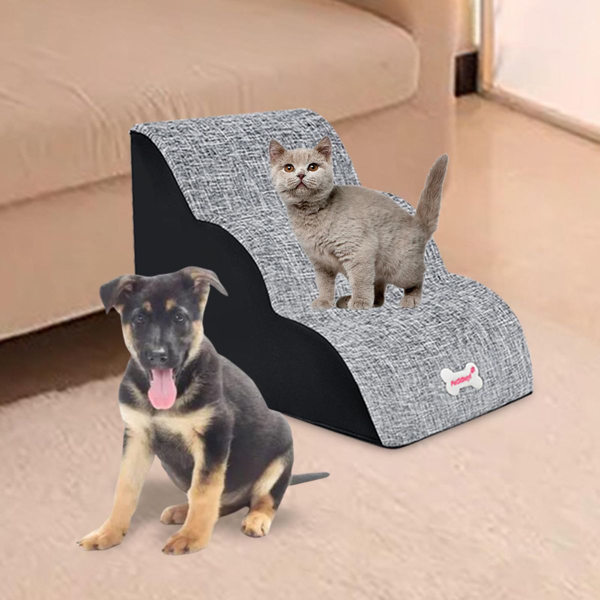 【PREMIUM MATERIAL】: The dog stair is made of high quality cloth material, soft and breathable, not easy to deform, climbing up and down is comfortable for your pet. Size 60cmx30cmx33cm/23.62inchx11.81inchx12.99inch.