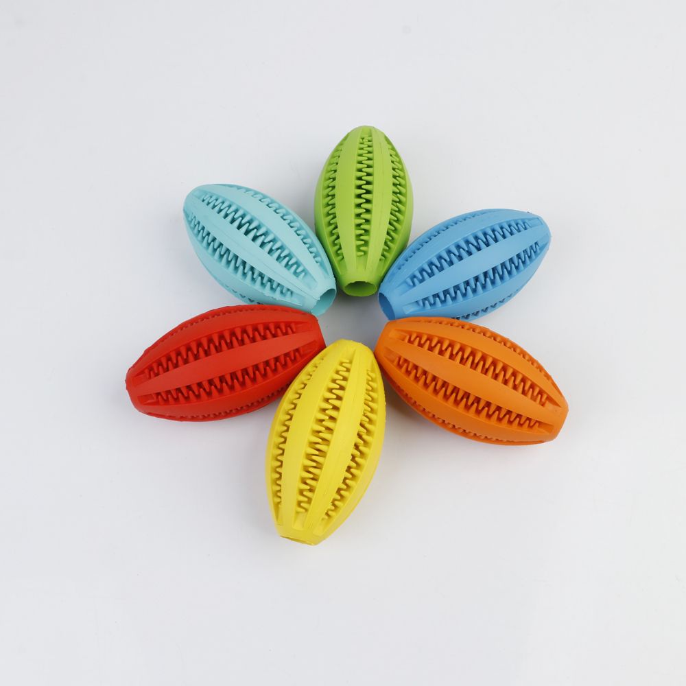 1X Pet Dog Toys Extra-tough Rubber Ball Toy Interactive Elasticity Ball Dog Chew Toys Tooth Cleaning Treat Rugby Ball