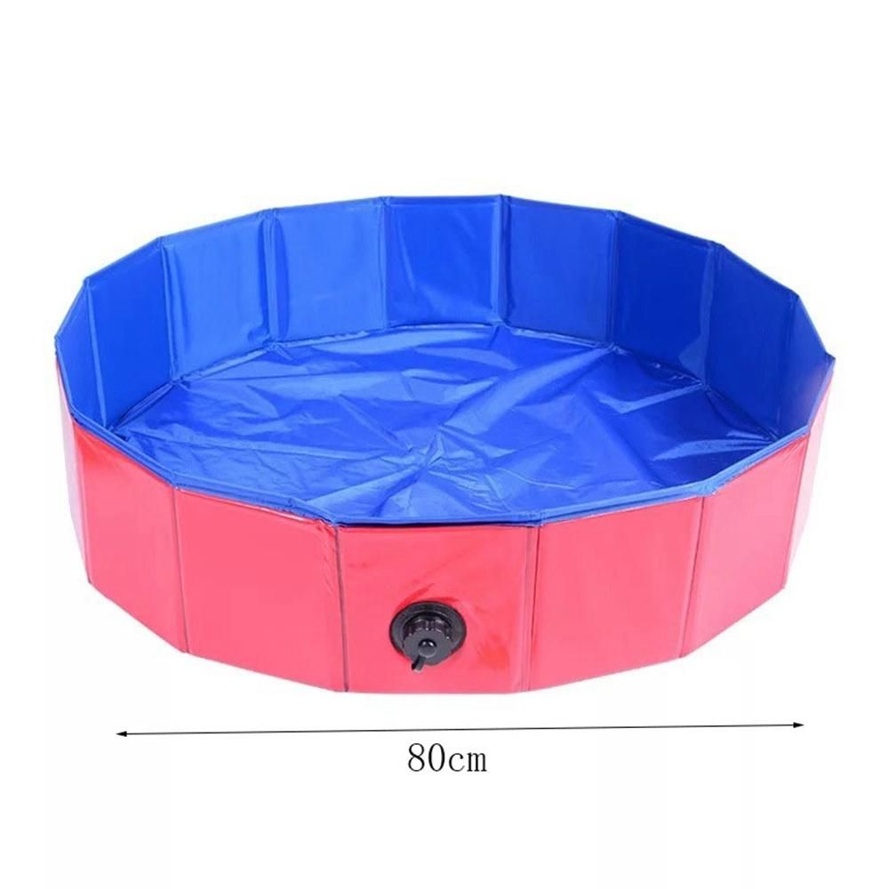 Pet Dogs Swimming Pool Puppy Bathing Tub Red Dia 80cmVersatile pool: This pet swimming pool can be used both indoors and outdoors. The pool can also be filled with water, sand or sea balls to built great entertainment for kids and pets to have fun outdoors/indoors.