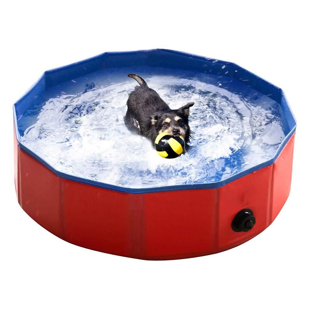 Portable & foldable: This pet pool can be folded into a compact size for easy storage and carrying. Boasting of a space-saving and portable design, this swimming pool is also perfect for travel with.