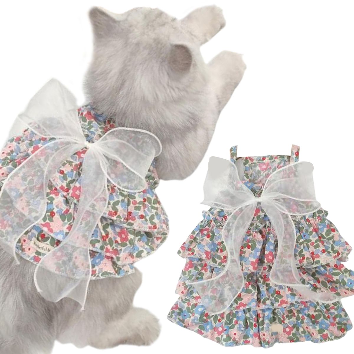 Characterized by flower patterns and white bow-knot ornament, this pet princess dress is ideal for dressing up your lovely pets, making them stand out from the pack when going outdoors or participating in the party.