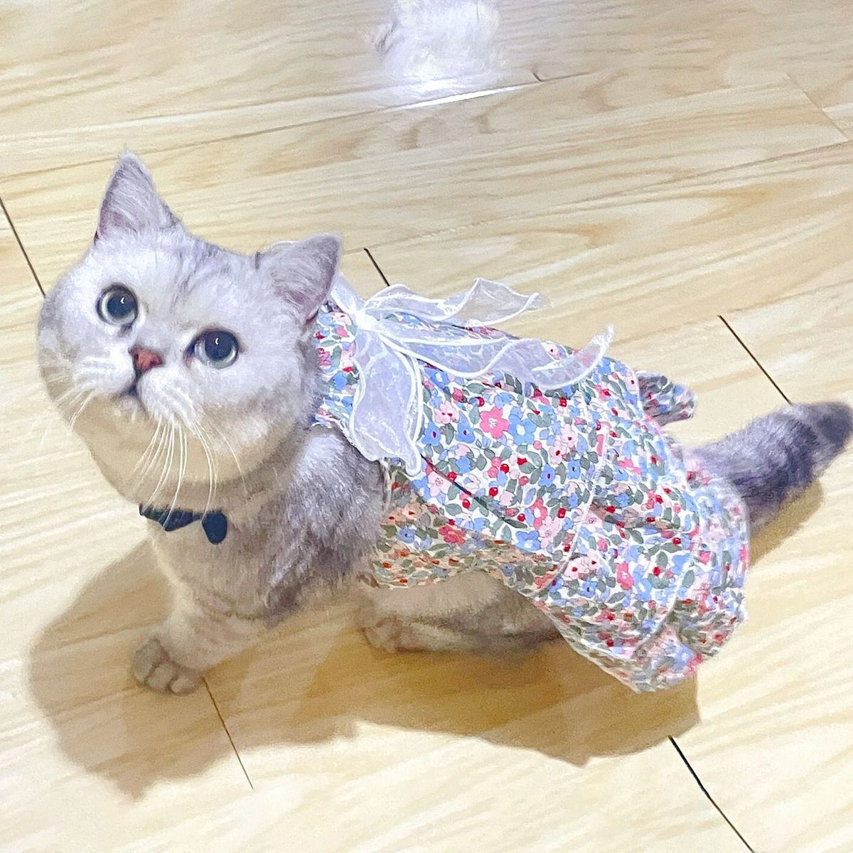 The pet princess dress is printed with lovely flower patterns, which adds a sense of sweetness. Moreover, the back of this dress has a white bow-knot ornament, attracting other people's attention.