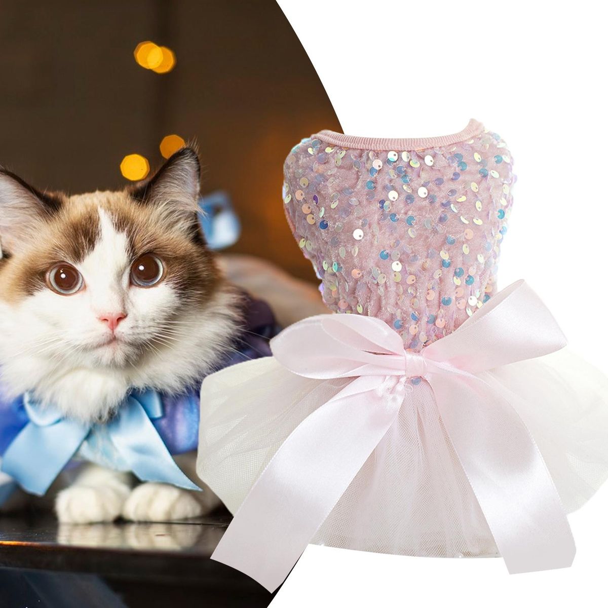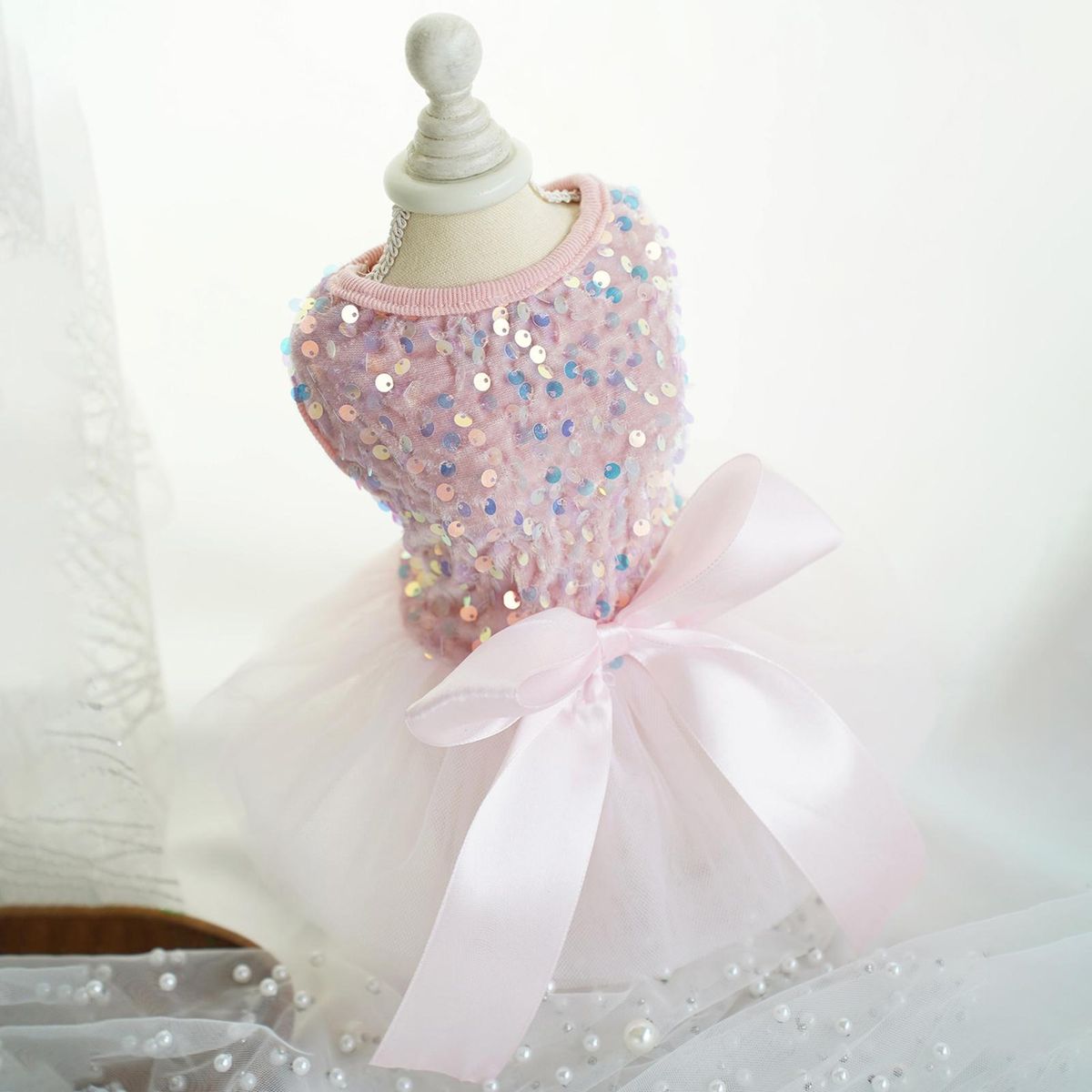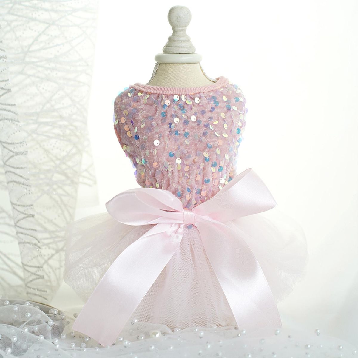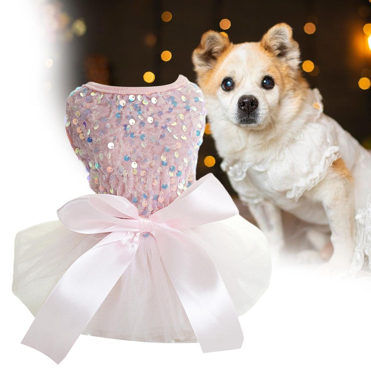 Characterized by sequins, bowknot, and mesh splicing decor, the dog dress could add a sweet feeling to your pet, making it attractive and charming.