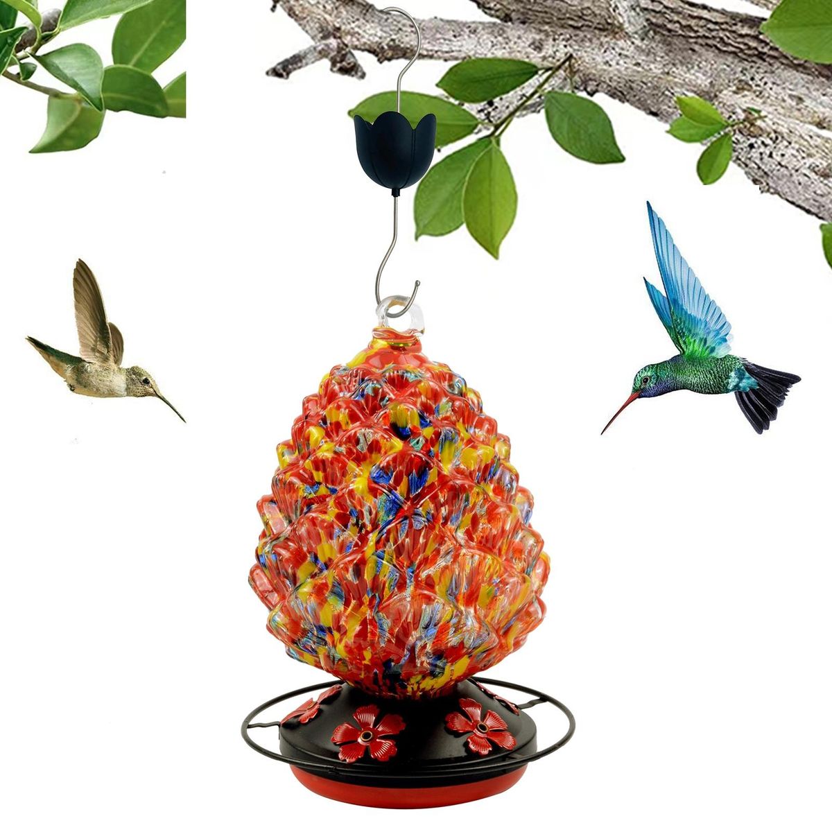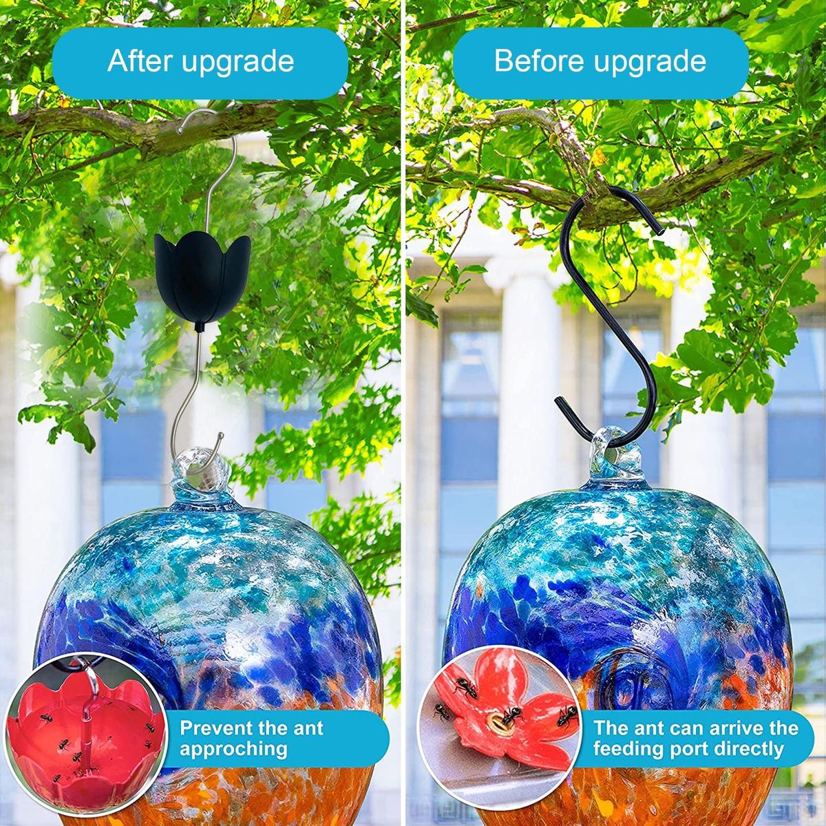Designed with an inverted umbrella shape and very bright colors, this bird feeder hook can be used not only to decorate your garden with a large capacity to deter even large ants.