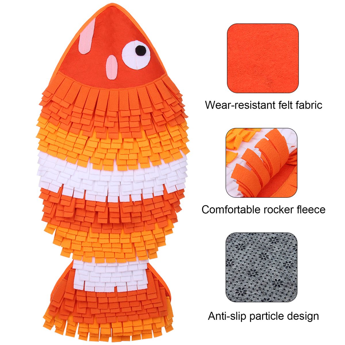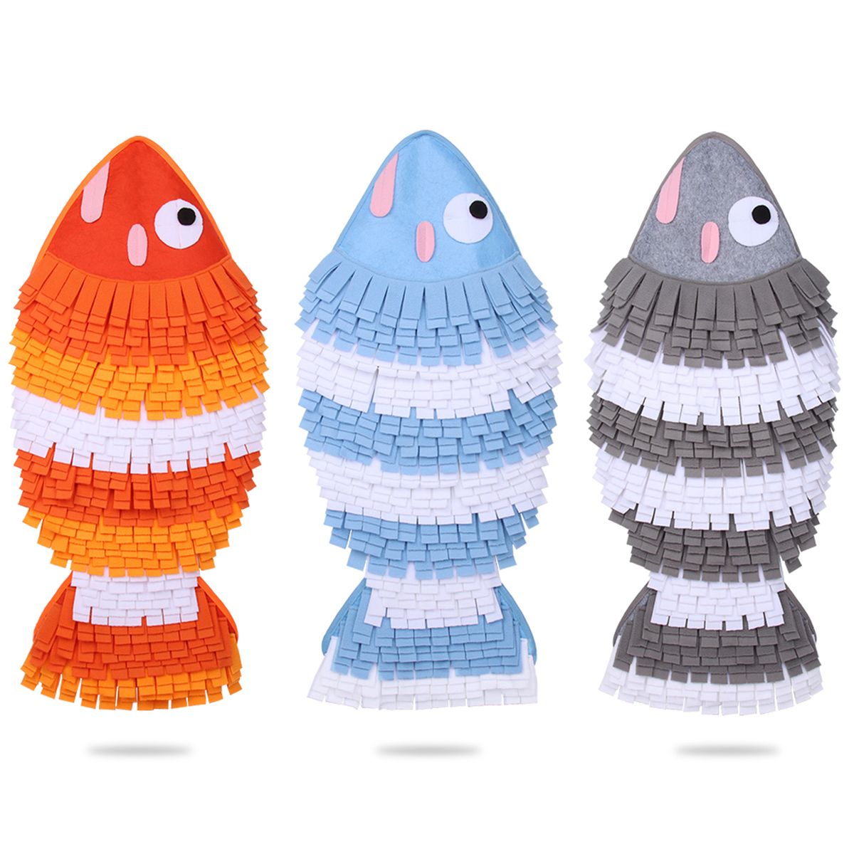 Designed with the appearance of a fish, this sniffing mat can attract the interest of pets and comes in three colors for your choice.