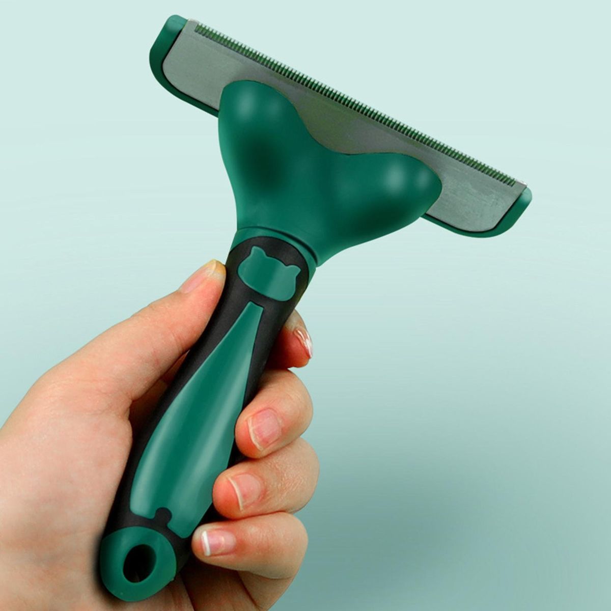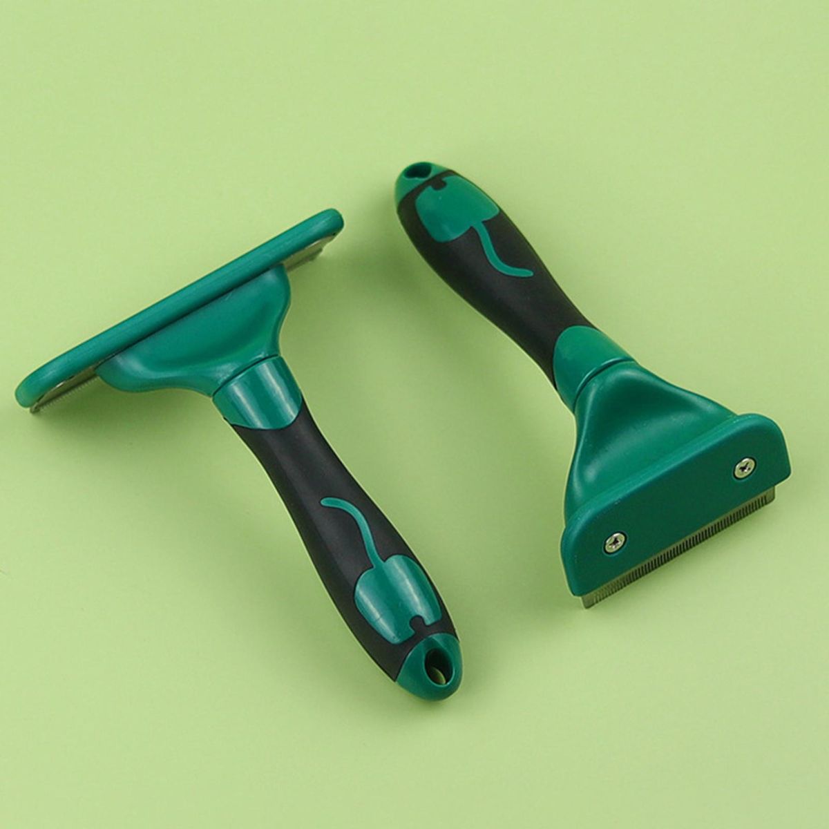 With an ergonomic design and non-slip handle, this pet shedding comb fits in the hand and has a comfortable grip.