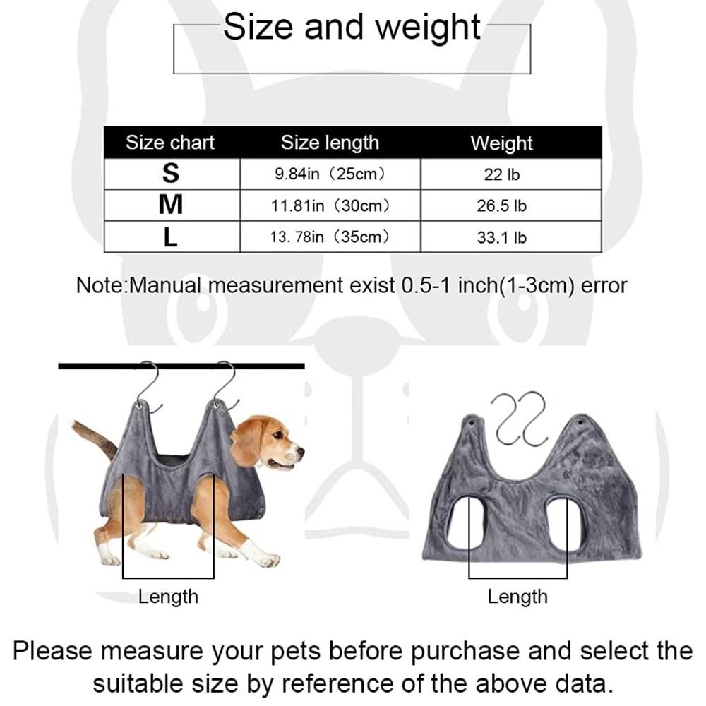 [Easy To Use]-Just place pet legs in holes, wrap around and use the S-hooks to hang. Hang the pet in the air, exposing the four feet and head, It has a front and a back. The wide side is for the head and the narrower is for the tail,use it correctly .more easily installed than traditional harnesss, you can easily hang it anywhere in the suspension rod.